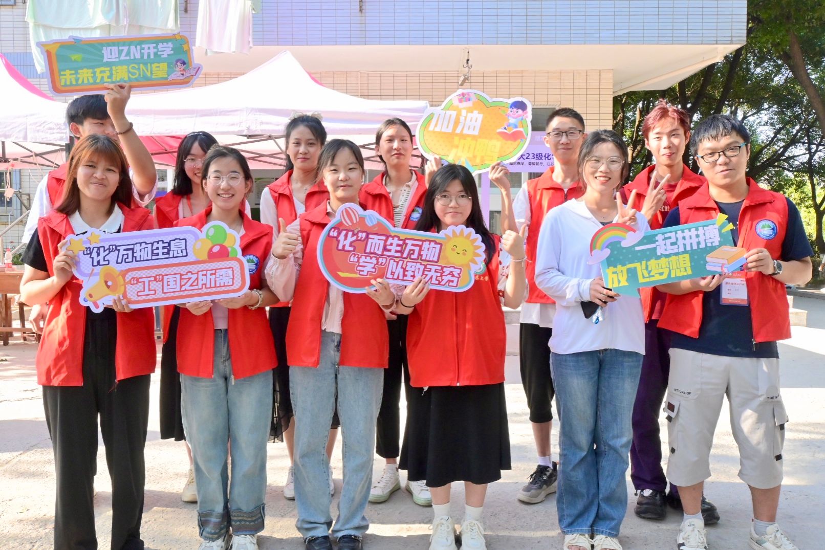 炎炎烈日下,千余名师生志愿者分布在车站、校车、宿舍区、咨询点、交通干道等,以饱满的精神状态服务新生办理报到流程,耐心解答疑问,成为迎新工作的一道靓丽风景线。