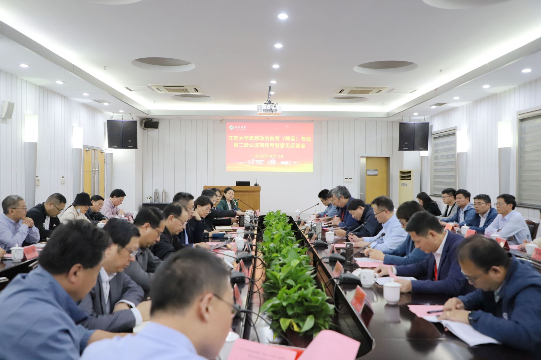 江苏省教育评估院副院长吴立平讲话,重点介绍了全省师范专业认证的总体情况,强调学校、学院要结合师范类专业认证和基础教育教师队伍建设的新要求,认证吸收和消化专家组反馈的意见和建议,做到以评促改、以评促建、以评促强,持续改进,追求卓越。考查意见反馈会由专家组副组长钱进主持。