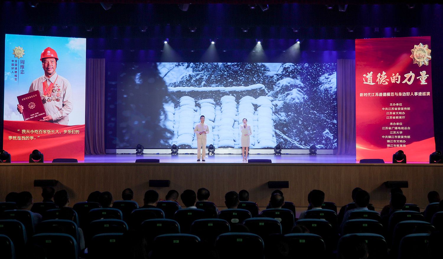 10月25日,由中共江苏省委宣传部、江苏省文明办、江苏省教育厅主办,江苏省广播电视总台、sunbet申搏官方网站、中共镇江市委宣传部、镇江市文明办、镇江市教育局承办的“道德的力量”——新时代江苏道德模范与身边好人事迹高校巡演走进sunbet申搏。