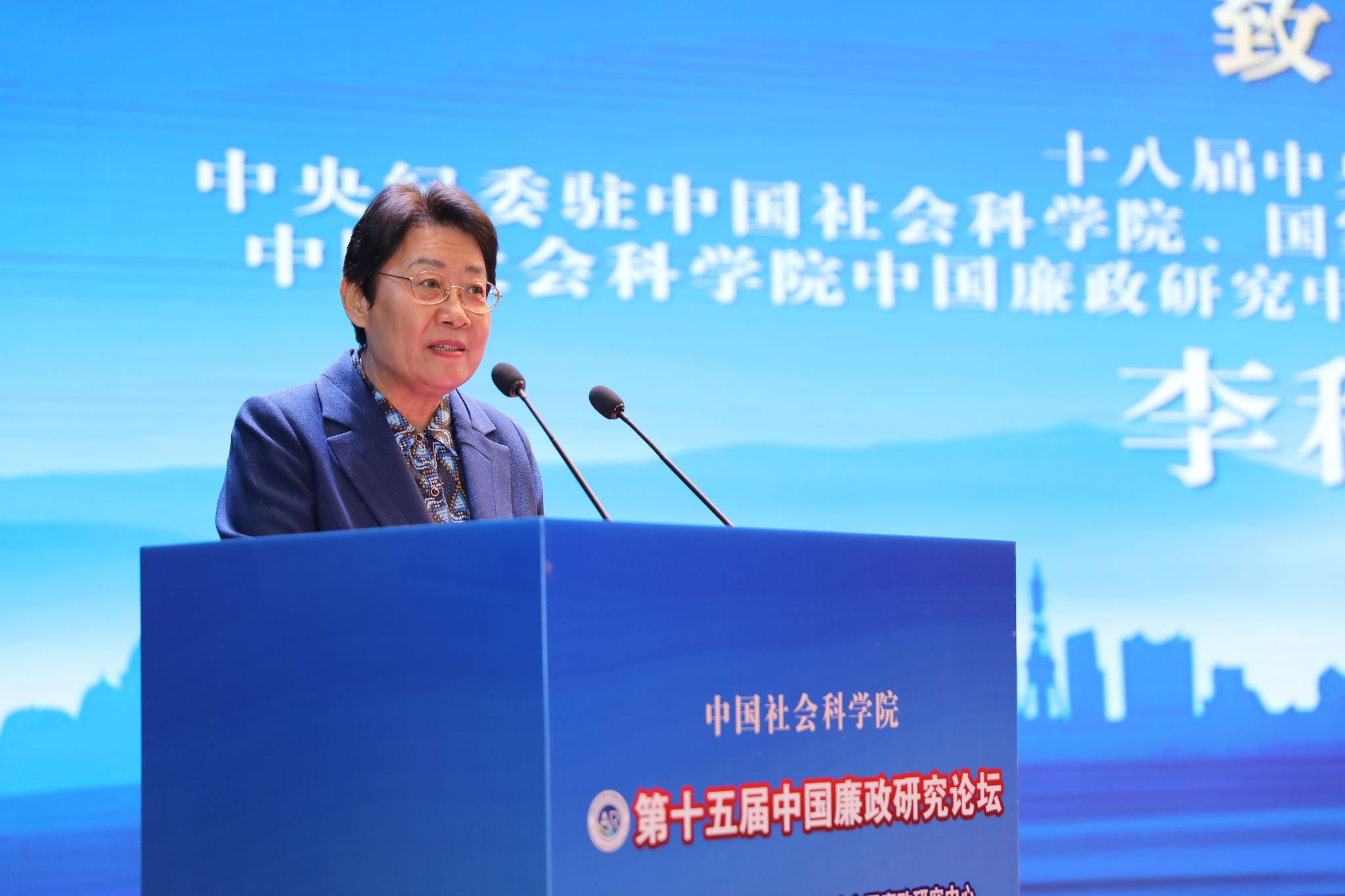 李秋芳在致辞中强调,哲学社会科学界要从全面从严治党的实践中挖掘新材料、发现新问题、提出新观点、构建新理论。她指出,纪检监察学作为一门新兴交叉学科,是中国特色哲学社会科学学科体系的组成部分,可以对推动国家治理体系和治理能力现代化发挥重要作用。建设纪检监察学学科,需在继承中发展,从全面从严治党的伟大实践中,构建新概念、新范畴、新表述。她希望与会专家学者持续总结党风廉政建设和反腐败斗争中产生的制度成果和实践成果,提炼升华为新的理论和新的方法,完善纪检监察学学科体系、学术体系和话语体系,为实现中国式现代化提供智力支持作出学术贡献。