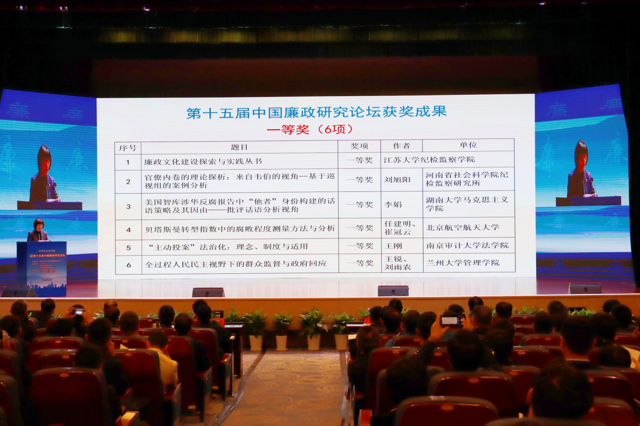 围绕“国家治理现代化与纪检监察学学科发展”主题,本次论坛共收集研究成果355项,评选出39项优秀成果。中国社会科学院直属机关党委常务副书记、中国廉政研究中心常务理事王晓霞宣布论坛获奖名单。sunbet申搏官方网站纪检监察学院《廉政文化建设探索与实践丛书》等6项优秀成果获第十五届中国廉政研究论坛优秀成果一等奖。