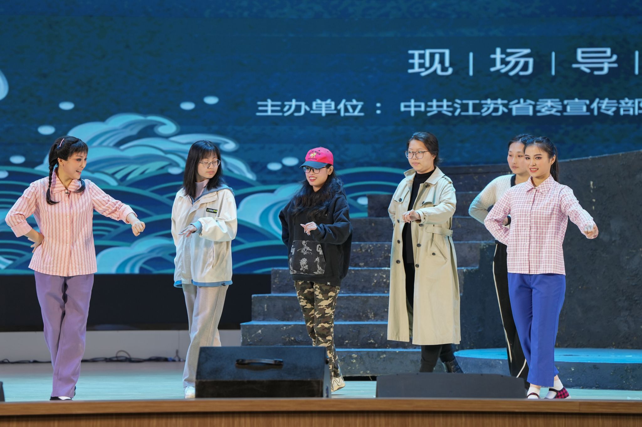 演出前,王仕花的扮演者、国家一级演员董红等主演在导赏环节与同学们分享了锡剧的特色和历史,同学们踊跃来到舞台上,跟随老师体验学习戏曲身段,激发了浓浓的观戏兴趣。