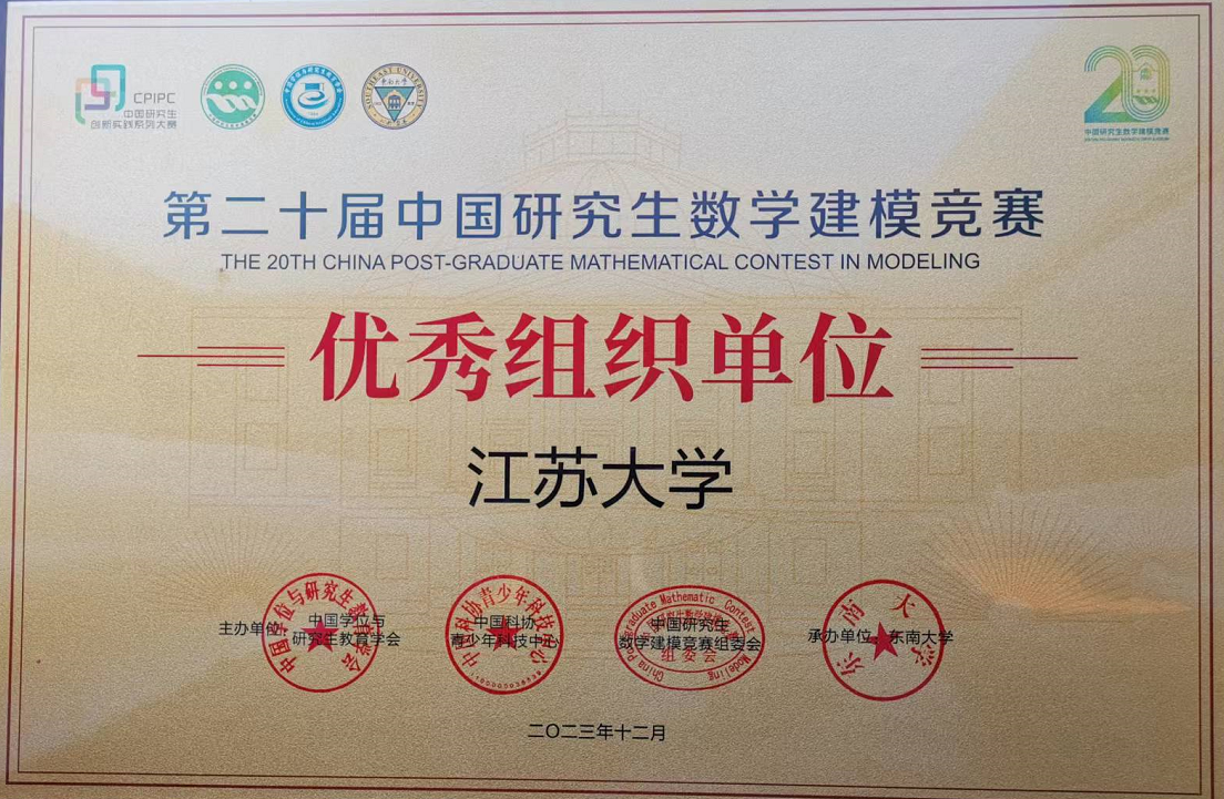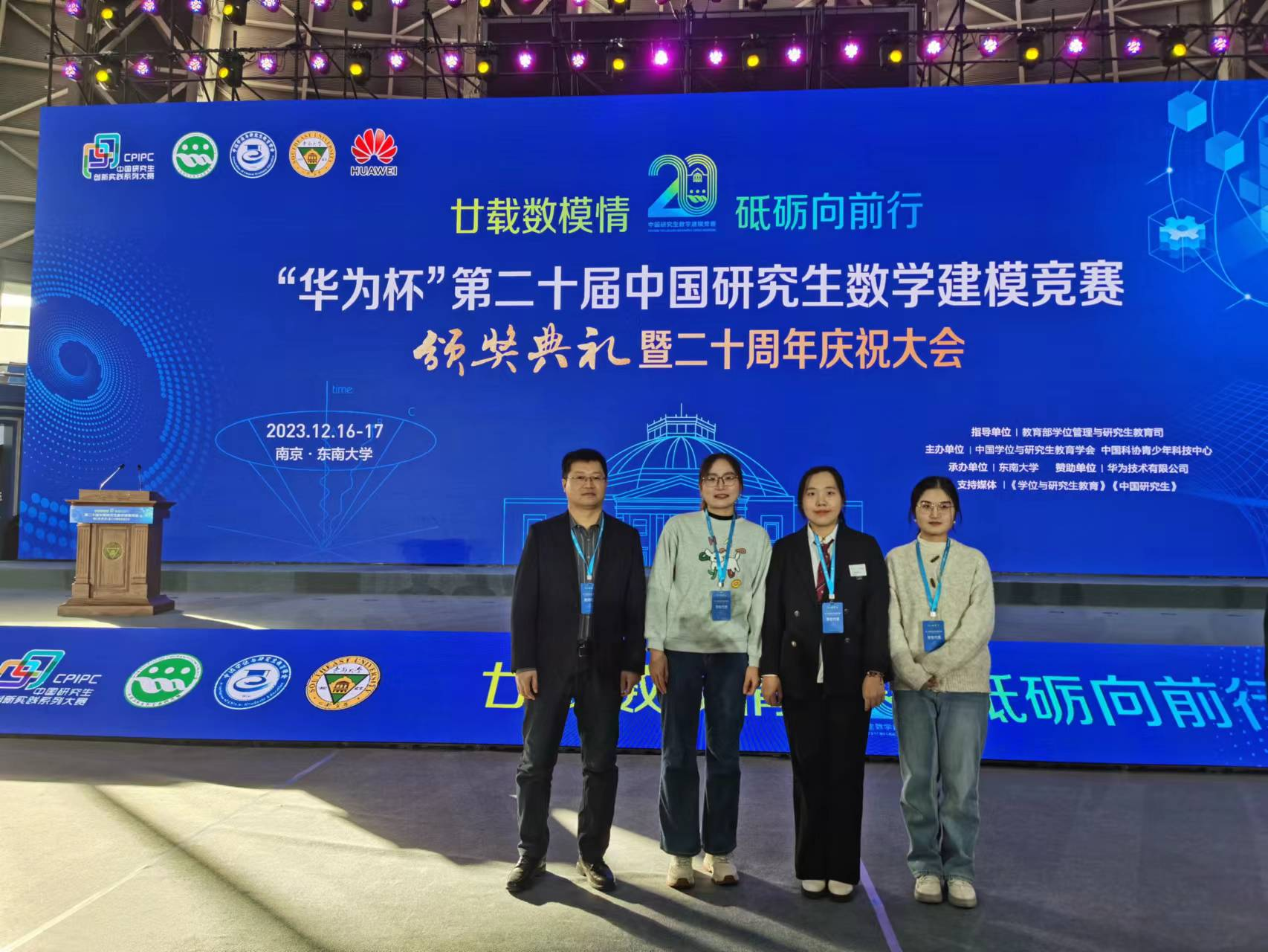 近日,“华为杯”第二十届中国研究生数学建模竞赛颁奖典礼在东南大学举行。sunbet申搏数学科学学院王海鑫、卜君、黄晗菁3名研究生组成的团队斩获全国一等奖。此外,sunbet申搏学子还获得全国二等奖25项、三等奖18项,王林君老师获评先进个人,学校获颁优秀组织奖。