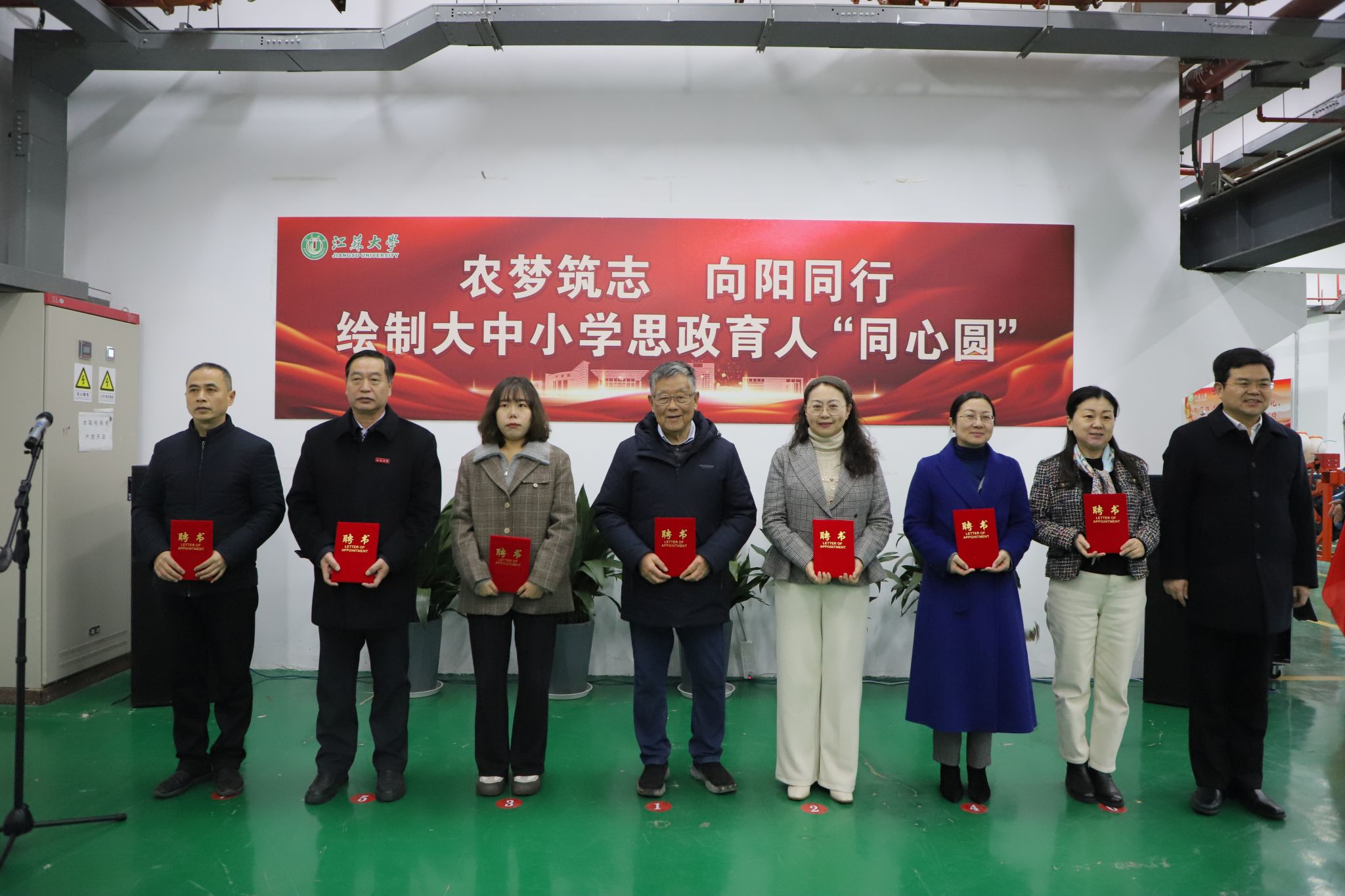 1月4日,由党委宣传部主办的“农梦筑志 向阳同行”绘制大中小学思政育人“同心圆”主题活动在耒耜大楼举行。“全国脱贫攻坚楷模”“时代楷模”赵亚夫,校党委书记李洪波,校党委常委、副校长李红,新华日报社镇江分社社长晏培娟,校党委常委、党委宣传部部长、党委统战部部长吴麟麟,以及镇江新区永兴农机机械化专业合作社、农业工程学院、马克思主义学院、思想政治工作研究院、sunbet申搏官方网站附属学校的师生代表参加活动。活动仪式由李红主持。