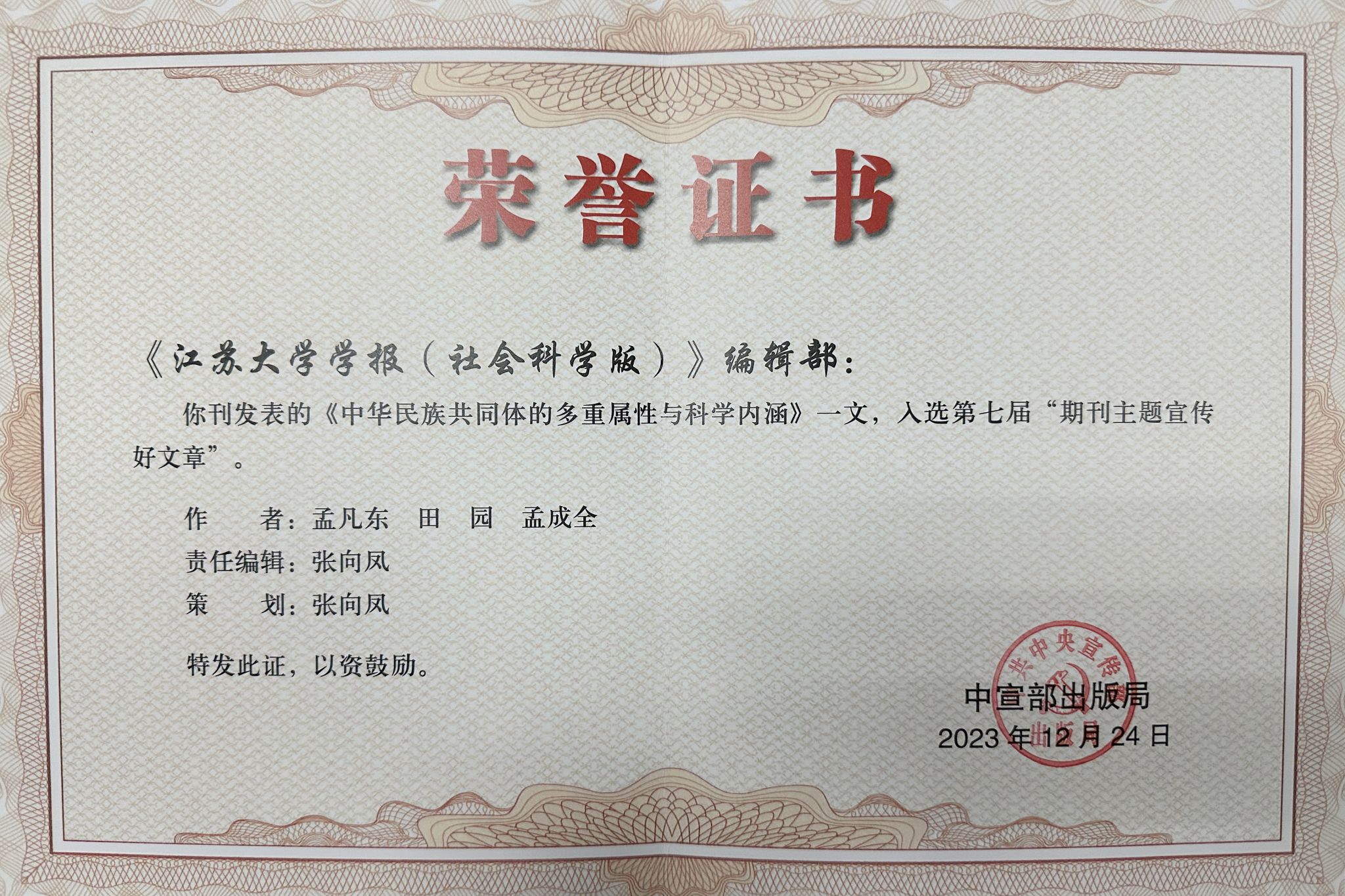 近日,第七届“期刊主题宣传好文章”推荐活动结果揭晓。《sunbet申搏官方网站学报(社会科学版)》发表的《中华民族共同体的多重属性和科学内涵》入选。