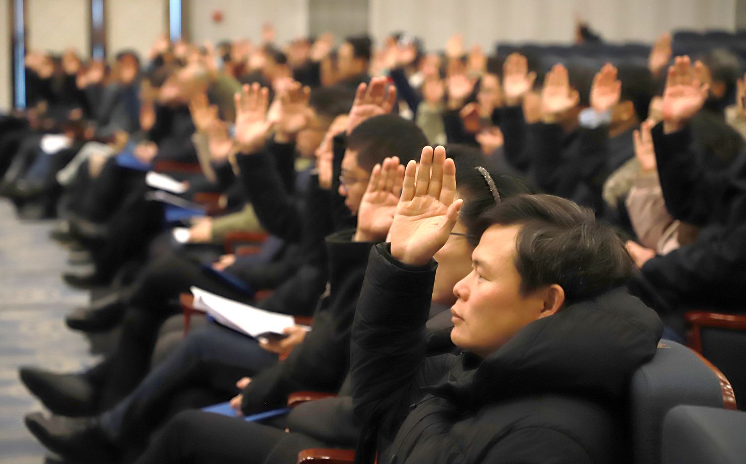 大会在《国际歌》中胜利闭幕。(党委宣传部 工会)