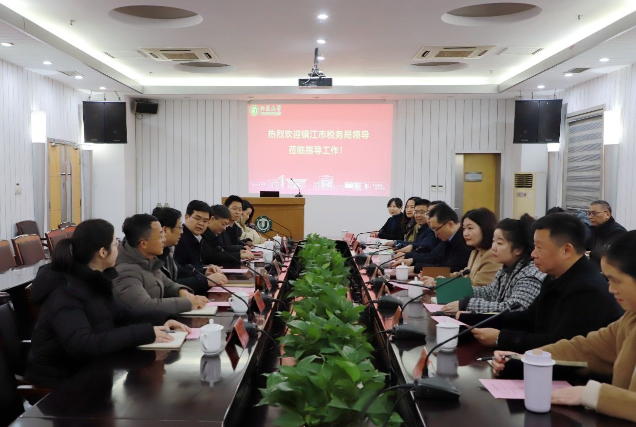 3月5日,镇江市税务局局长叶华一行12人到sunbet申搏调研走访,就开展多方位、深层次合作进行深入交流。校党委书记李洪波接待了来访一行。