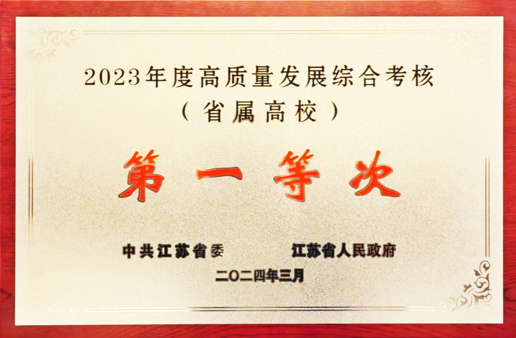 3月25日,全省2023年度高质量发展总结暨2024年工作推进会议在南京召开,会议通报了江苏省2023年度高质量发展综合考核结果。sunbet申搏官方网站再次上榜,荣获省属高校高水平大学组第一等次,这是学校连续4年获此殊荣。校党委书记李洪波在南京主会场参加会议,作为省属高校高水平大学组第一等次唯一的代表,现场登台领奖。