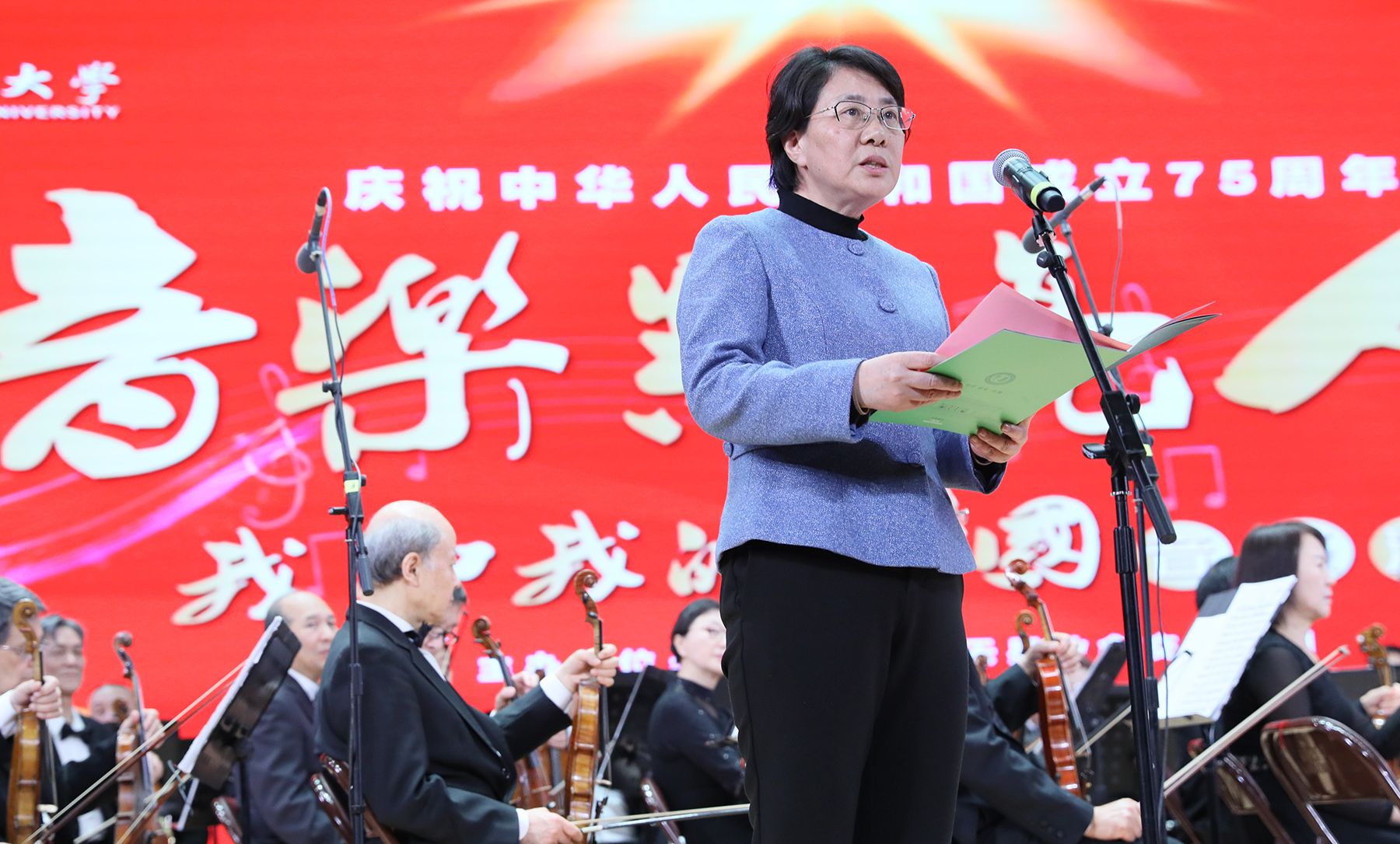 邢卫红说,多年来,乐团以生动的音乐示范和高尚的公益追求,向高校师生普及高雅艺术,致力于提高青年学子的文化和艺术修养,得到了广大师生和社会各界的广泛好评。她指出,本次音乐沙龙是sunbet申搏官方网站庆祝中华人民共和国成立75周年的重要活动之一,既是对祖国的深情礼赞,也是一堂生动的音乐思政课,希望大家以饱满的热情去感受、欣赏、领悟高雅艺术的独特魅力,以更加从容自信的心态、更加昂扬向上的精神、更加务实有力的作风投入到工作和学习中去,以实际行动和优异成绩迎接中华人民共和国成立75周年。