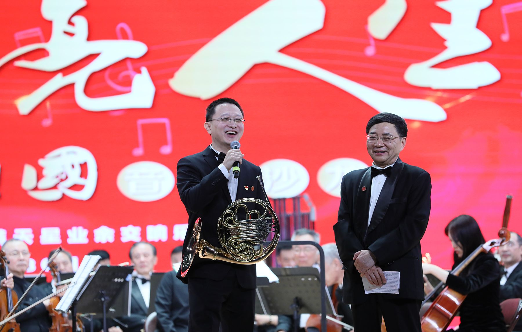 满天星业余交响乐团成立于2013年初,是在原党和国家领导人李岚清同志的关怀支持下,由全国16个省市和香港特别行政区的100多位退休高级知识分子、高级干部、高级军官组建而成。乐团以“不忘本来,吸收外来,面向未来”为宗旨,以“爱乐、博雅、至诚、奉献”为团训。乐团成员们在本行业取得突出成就的同时,用自身对音乐的热爱,以生动的音乐示范和高尚的公益追求,推广普及高雅艺术,先后到过百余所高校演出,此次是乐团成立以来的第188场演出。(党委宣传部)
