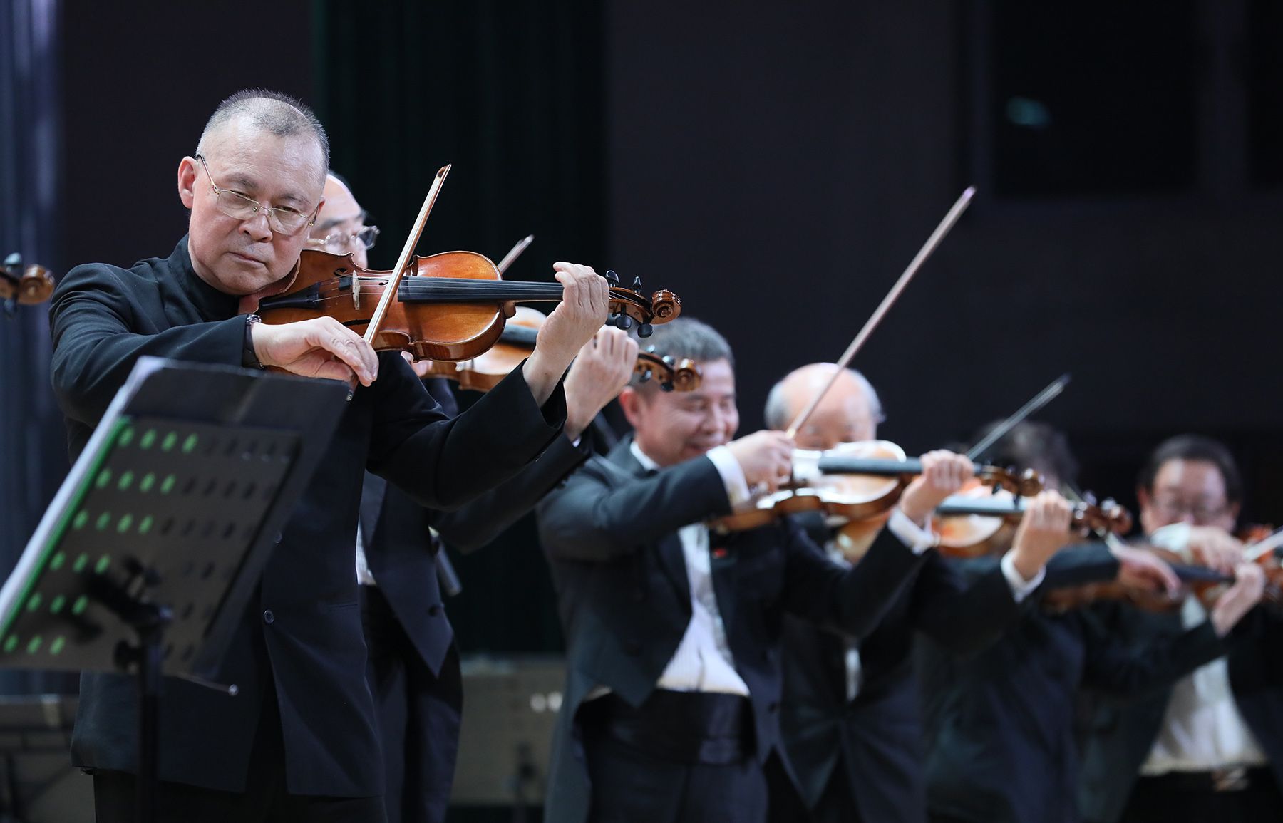 伴随着热烈欢快的《卡门序曲》,音乐沙龙正式拉开序幕。小提琴二重奏《我的祖国》以悠扬动听的旋律点燃听众的爱国情怀;世界名曲《第二圆舞曲》优雅神秘、《如歌的行板》舒缓优美、《蝙蝠序曲》华丽流畅;《红色娘子军》组曲铿锵有力、节奏鲜明,再现了娘子军战士的英雄气概和勇敢坚强;罗马尼亚民间舞曲《春天》、中国小提琴独奏曲《新疆之春》让现场观众感悟了中外民族乐曲的独特魅力;乐团女高音独唱《长江之歌》大气磅礴、震撼人心;《北京喜讯到边寨》以激情的旋律,把现场气氛推向高潮……乐团成员精湛的演奏技艺与丰沛的情感烘托,令现场观众沉浸在高雅艺术的海洋之中。