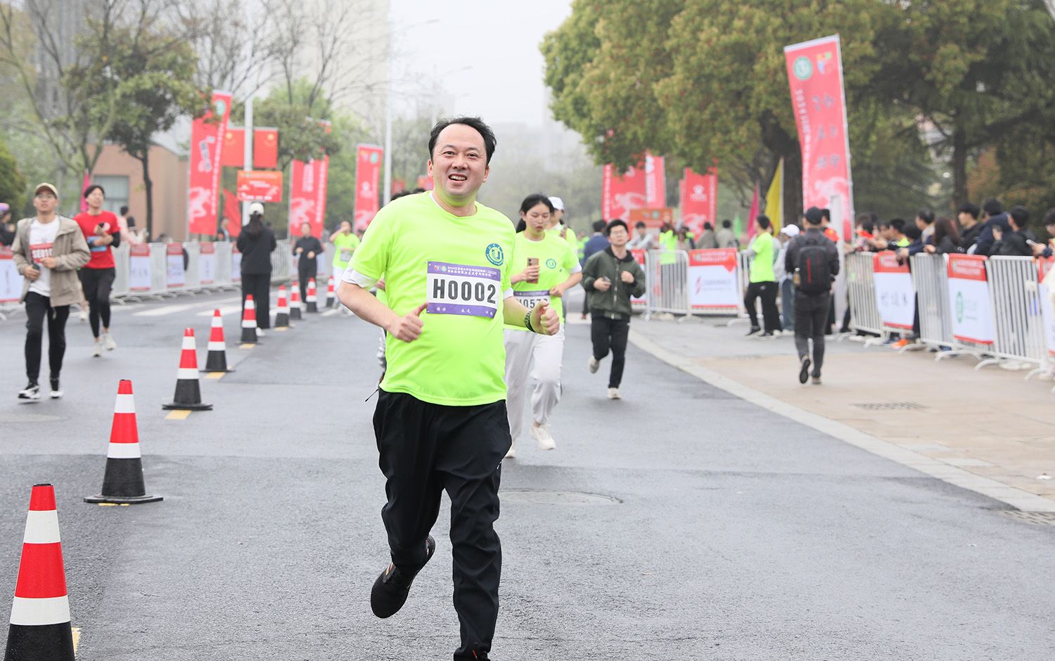 李洪波说,江大校园马拉松赛深受师生关注和喜爱,已成为构筑校园体育文化、传递“江大精神”的靓丽名片。奔跑在繁花似锦、诗意盎然的校园赛道上,不仅能体验到自然之美、运动之趣,更能感受到学校浓厚的人文氛围与朝气蓬勃的前行状态。他希望全体选手发扬团结协作、顽强拼搏、永不言弃的体育精神,赛出风格、赛出水平、赛出友谊,充分展现江大人团结一心、奋勇前行的良好精神风貌,进一步增强身为江大人的荣誉感、使命感、责任感,全面汇聚起推进“双一流”创建和特色鲜明高水平大学建设的磅礴力量。