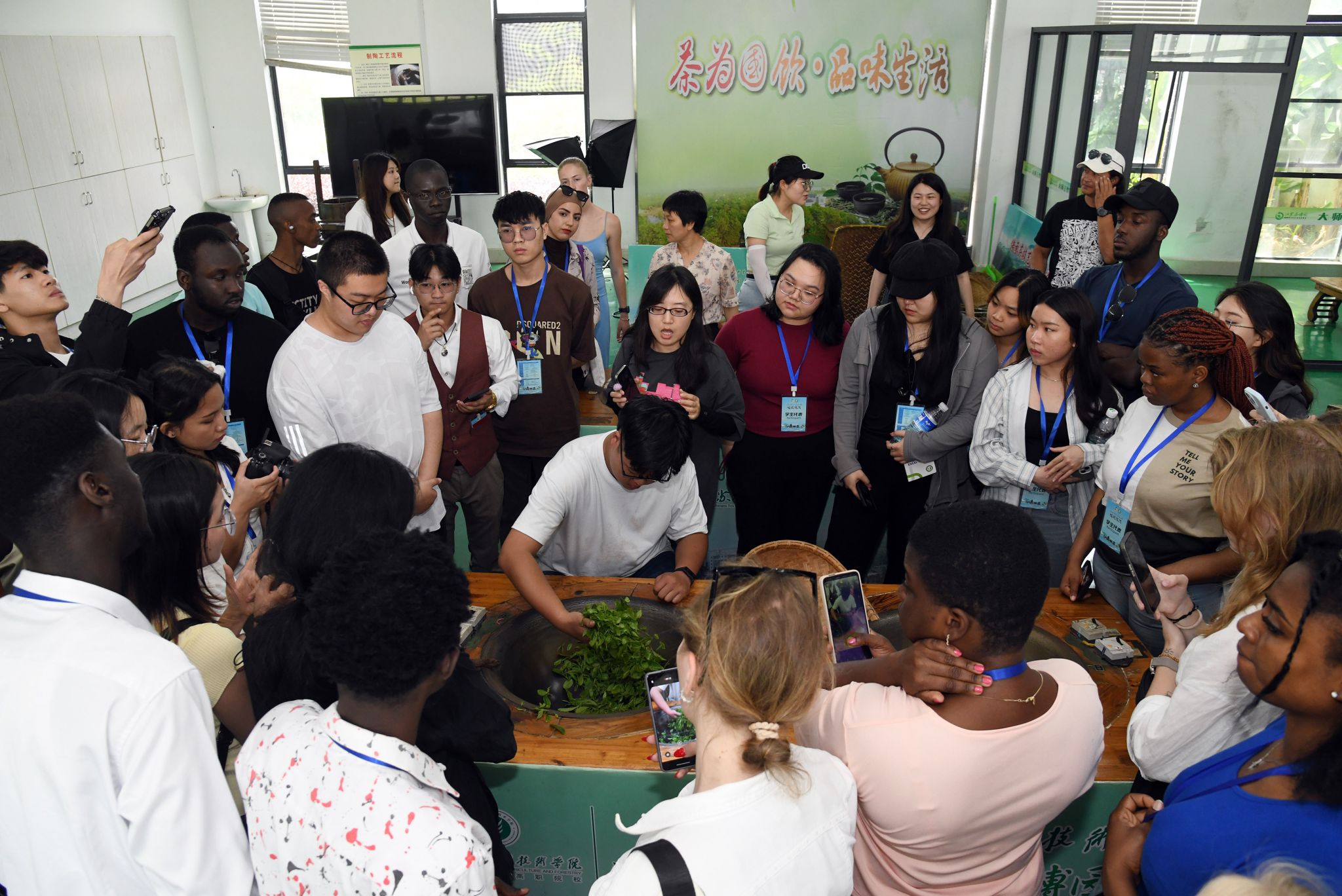 19日上午,sunbet申搏海外教育学院直属党支部书记王丽敏为留学生讲授茶文化知识,留学生还前往江苏茶博园体验了采茶、制茶、品茶等全过程。