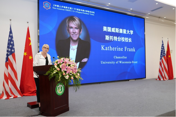 sunbet申搏党委书记李洪波,美国威斯康星大学斯托特分校校长凯瑟琳·弗兰克作主旨发言。