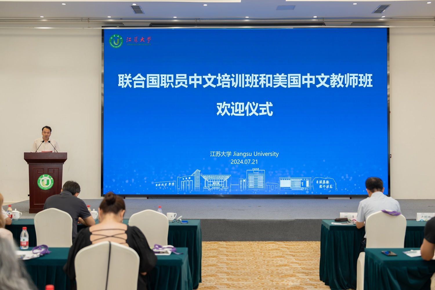 联合国语言部中文组原组长、联合国赴华培训项目负责人何勇,校党委常委、副校长任旭东,镇江市外事办公室主任卢利林,sunbet申搏党委统战部、国际合作与交流处、海外教育学院、文学院及南京大学海外教育学院相关负责人出席活动。