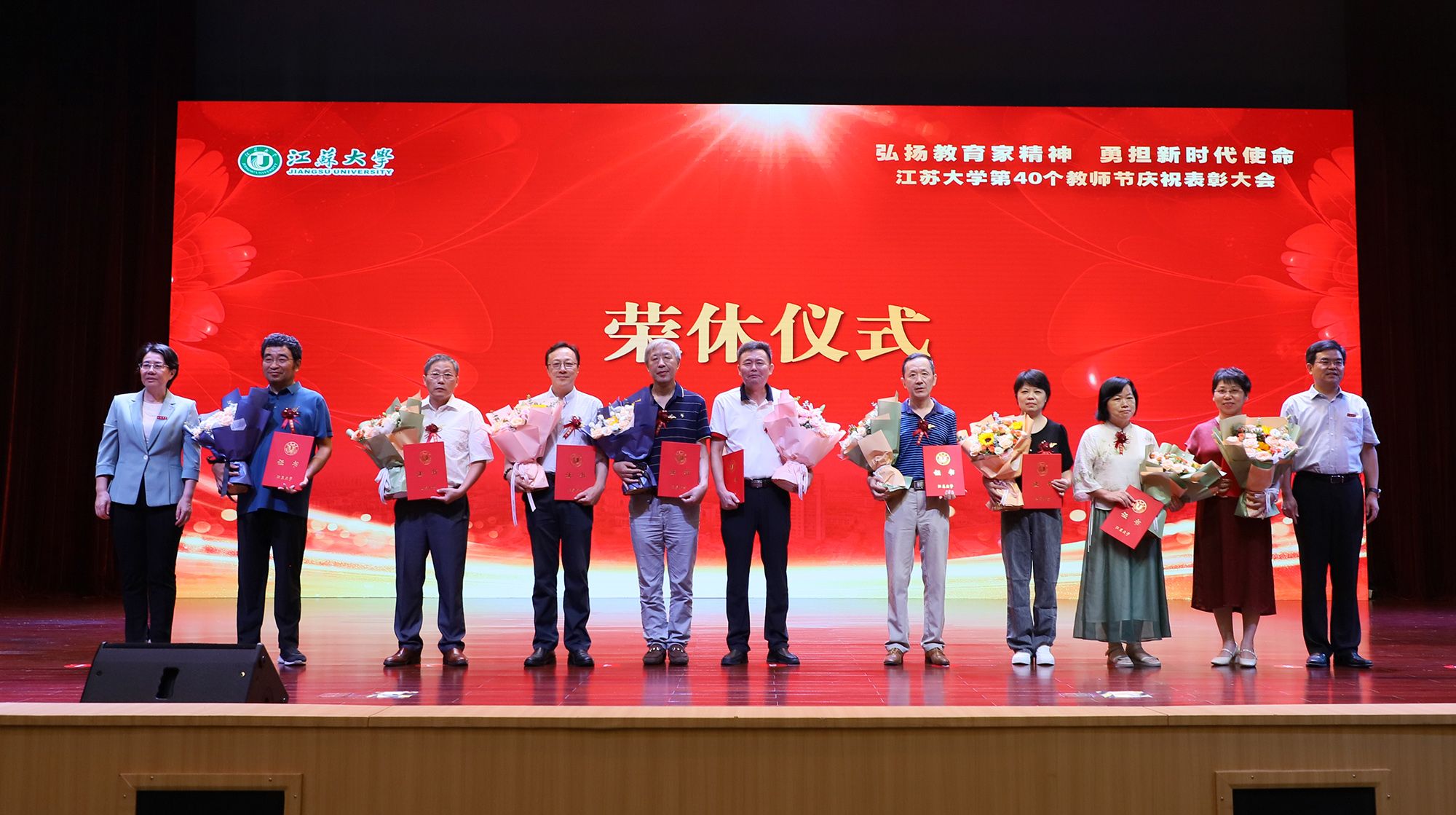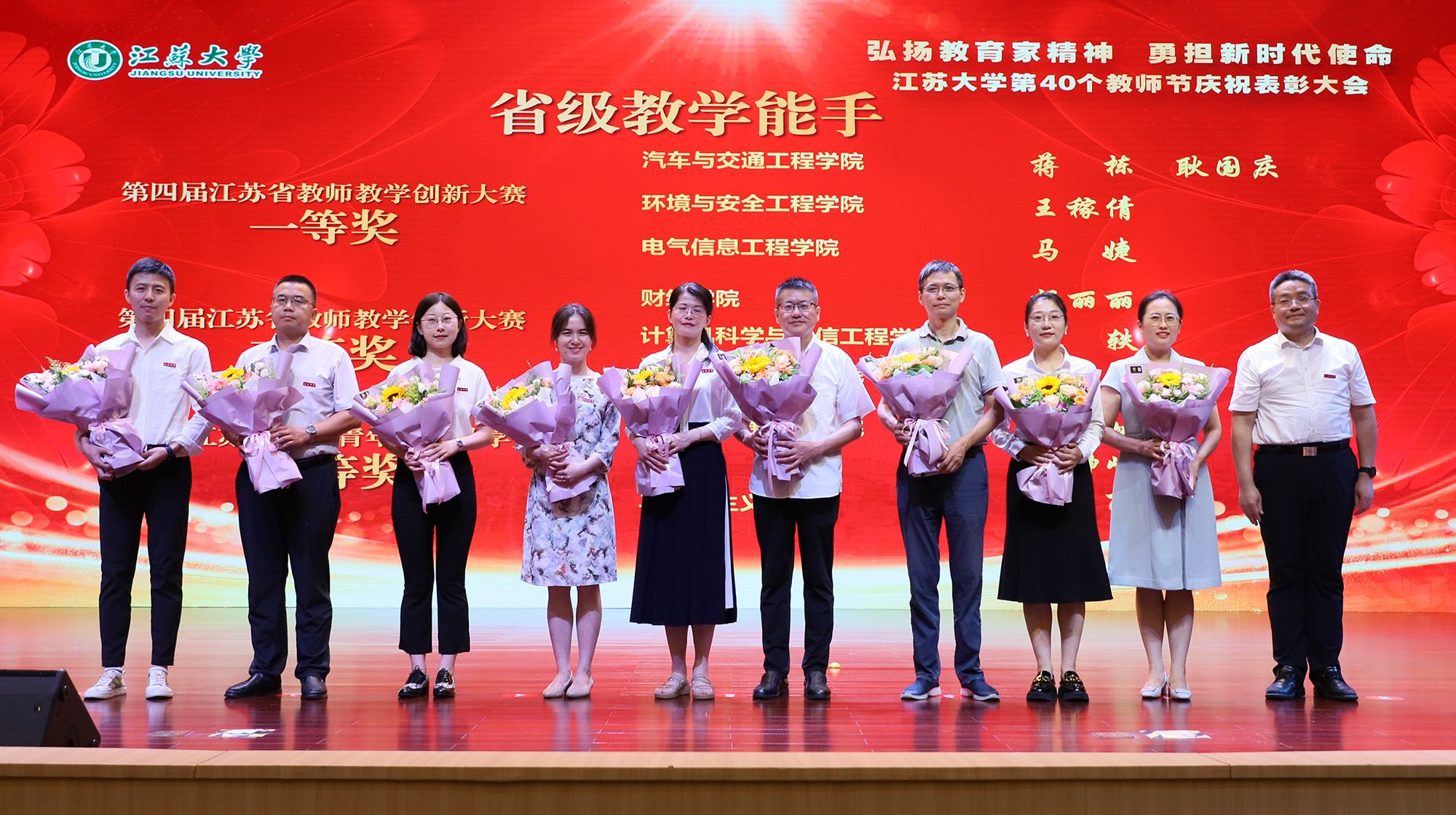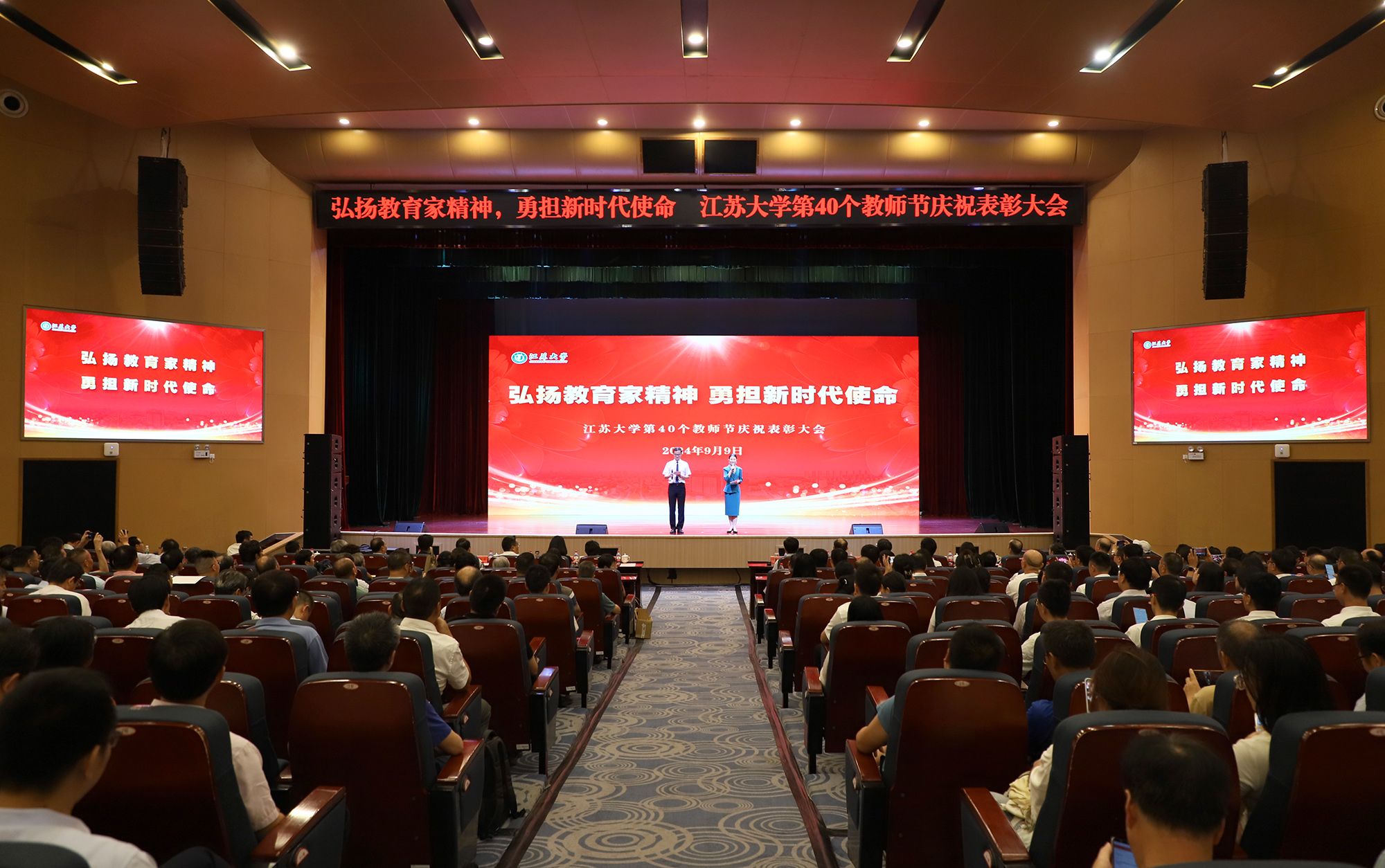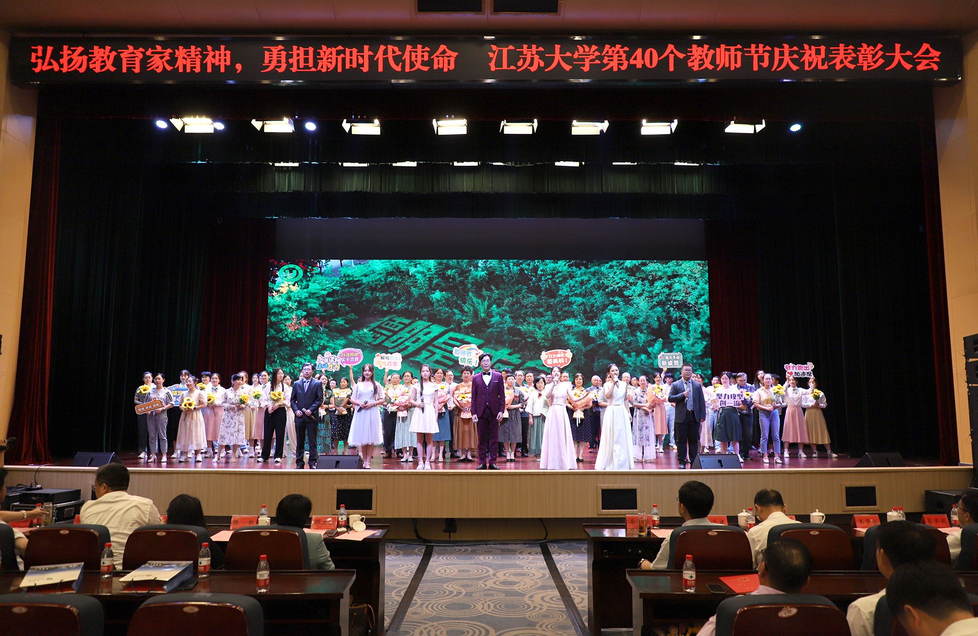 在第40个教师节到来之际,为大力弘扬教育家精神,加快建设教育强国,勇担新时代使命,为党育人、为国育才,持续推进“双一流”创建和特色鲜明高水平大学建设,9月9日,学校隆重举行庆祝表彰大会,讲述江大故事、表彰先进教师、迎接新生力量。