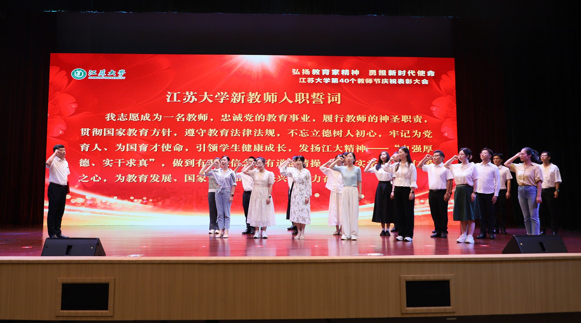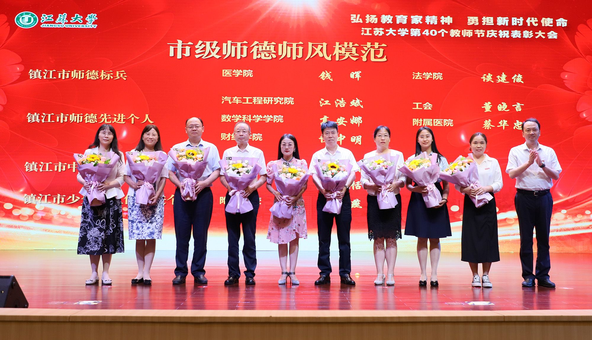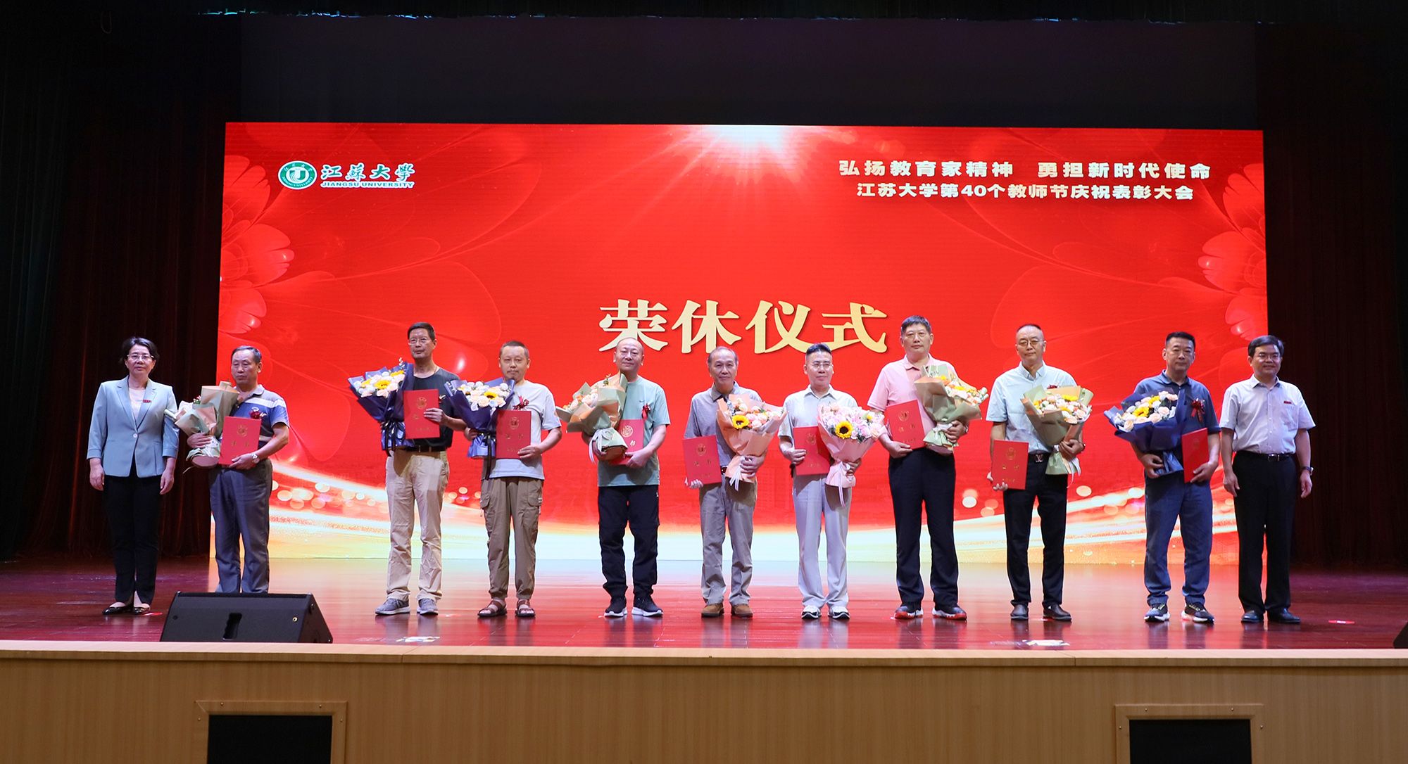 在第40个教师节到来之际,为大力弘扬教育家精神,加快建设教育强国,勇担新时代使命,为党育人、为国育才,持续推进“双一流”创建和特色鲜明高水平大学建设,9月9日,学校隆重举行庆祝表彰大会,讲述江大故事、表彰先进教师、迎接新生力量。