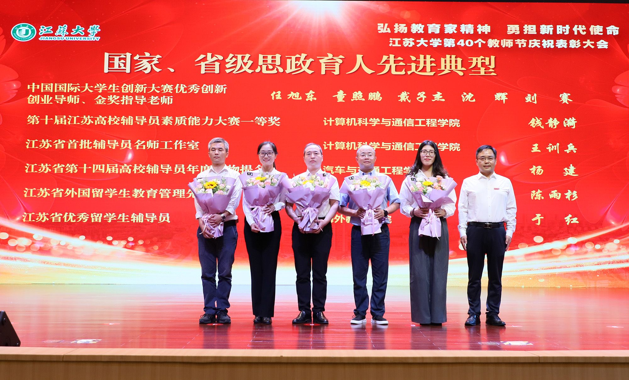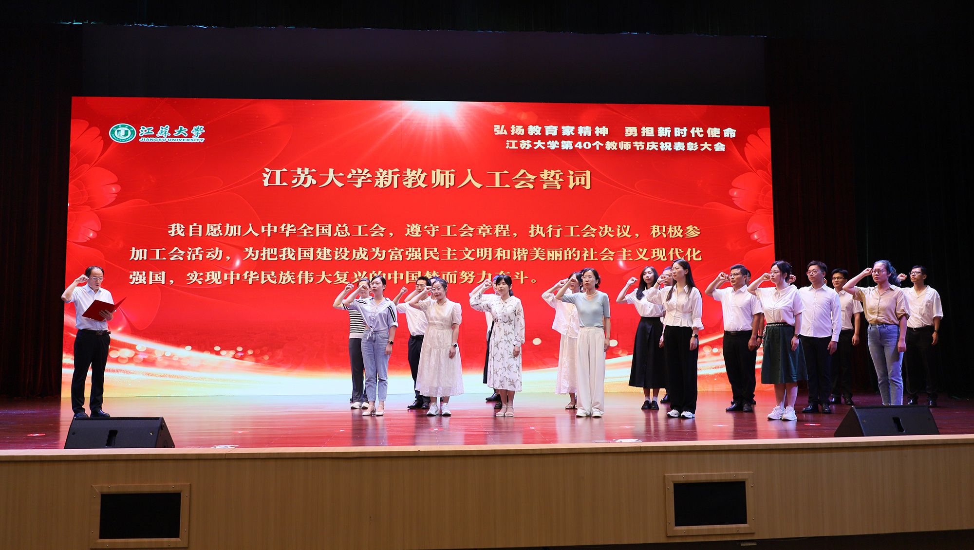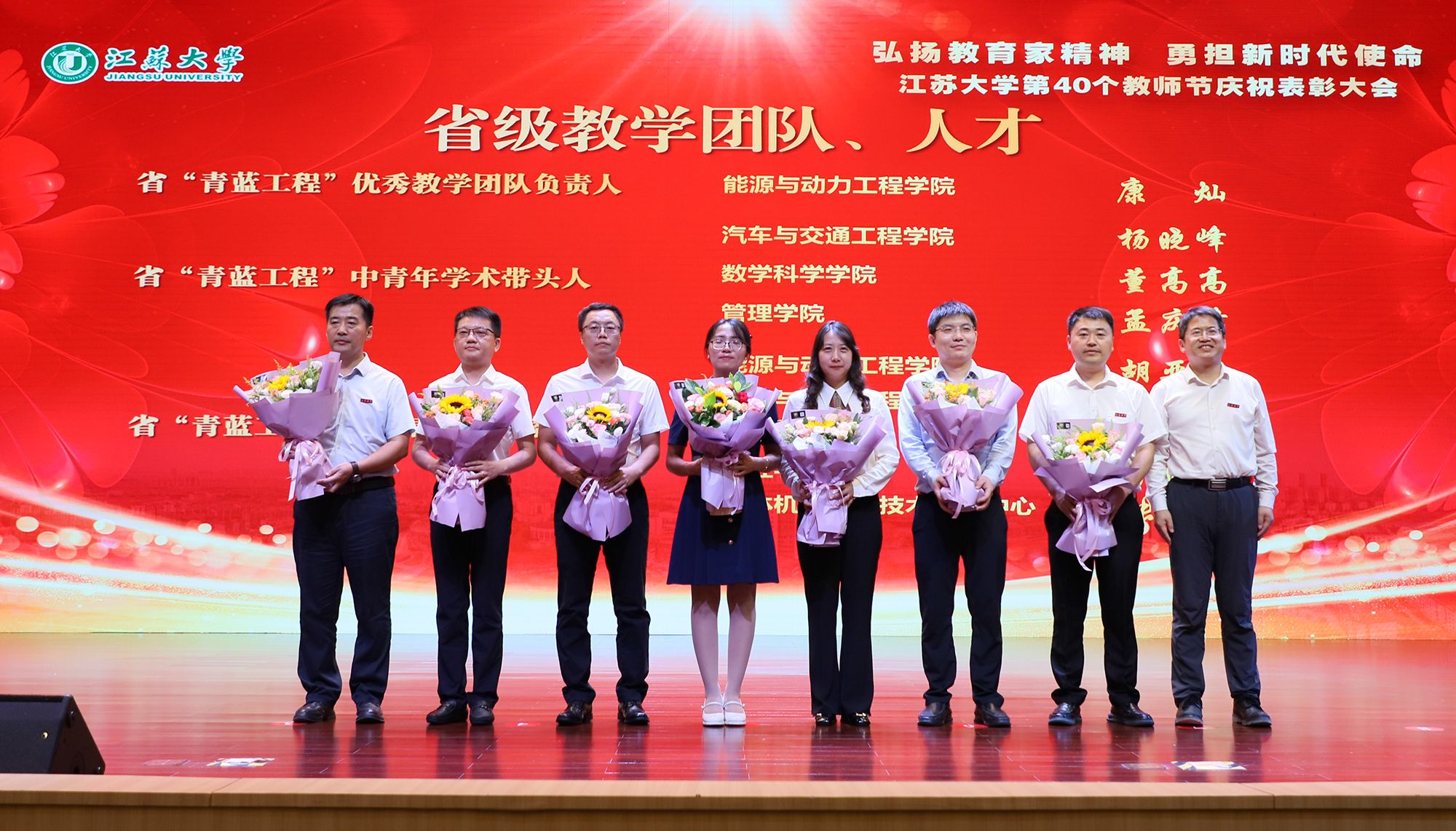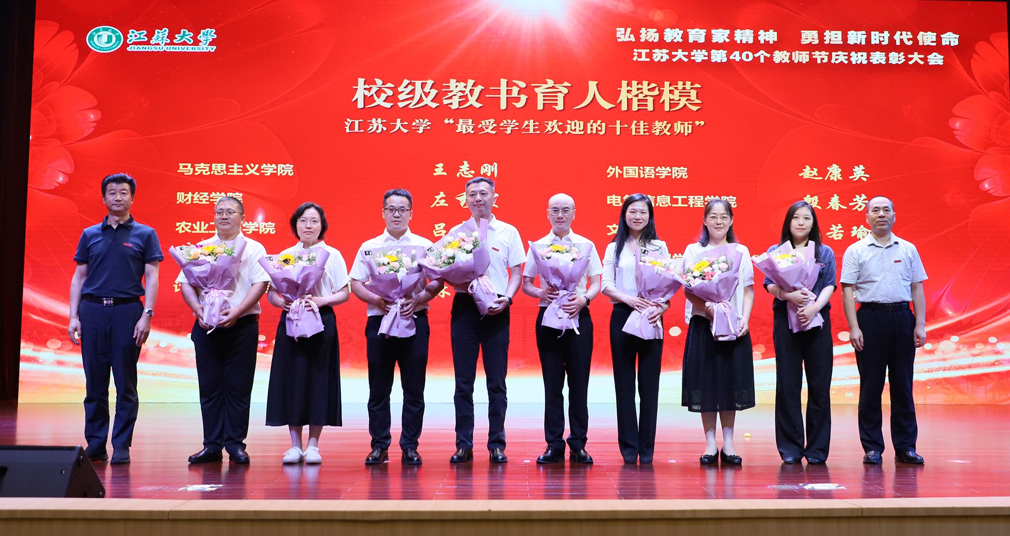 在第40个教师节到来之际,为大力弘扬教育家精神,加快建设教育强国,勇担新时代使命,为党育人、为国育才,持续推进“双一流”创建和特色鲜明高水平大学建设,9月9日,学校隆重举行庆祝表彰大会,讲述江大故事、表彰先进教师、迎接新生力量。