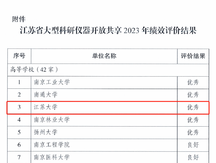 近日,江苏省科技资源统筹服务中心发文,公布2023年江苏省重大科研基础设施和大型科研仪器开放服务绩效评价结果。sunbet申搏连续四年获评优秀等次。