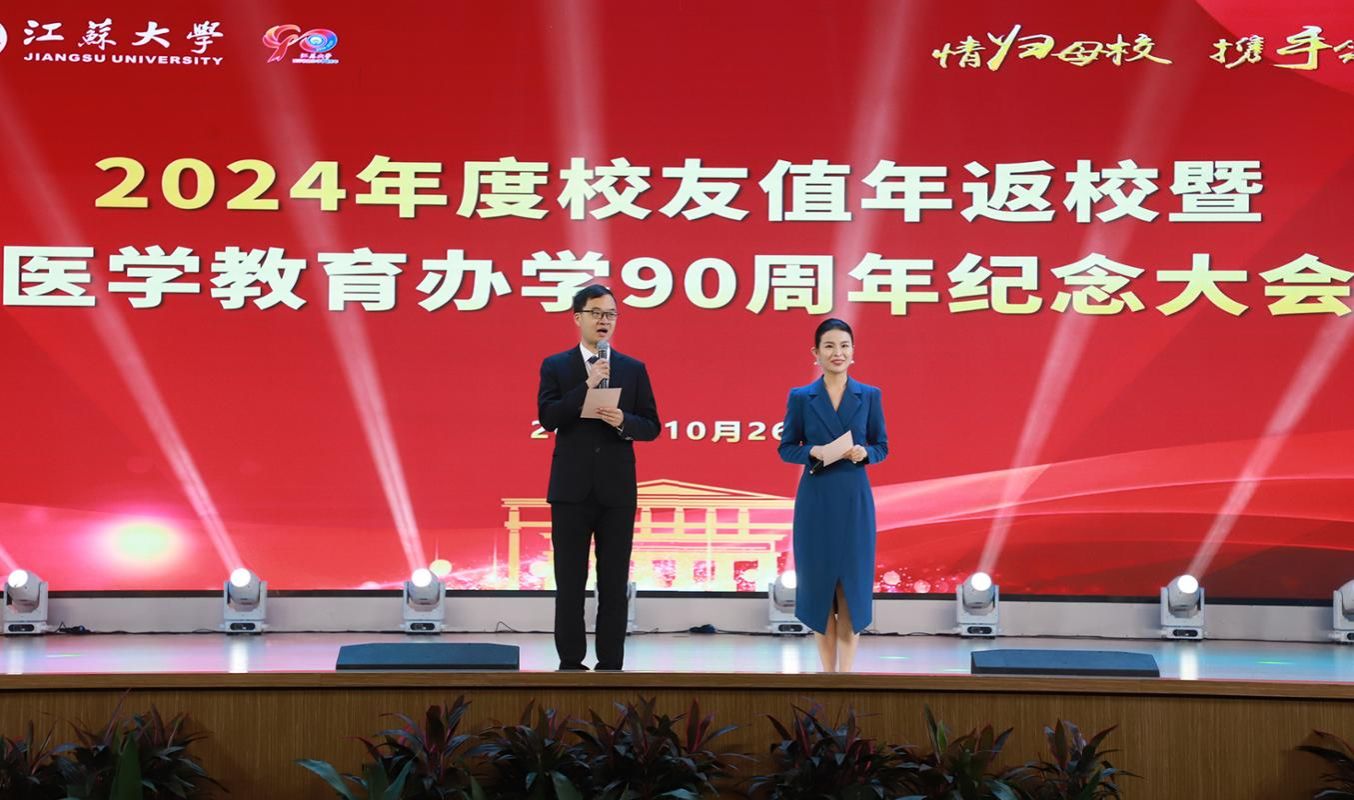校长邢卫红,校党委副书记张济建,校党委常委、副校长邹小波,校党委常委、副校长蔡英凤,校党委原副书记、纪委原书记曹友清,校关工委常务副主任、纪委原书记柴顺根,原副校长宋余庆,原镇江医学院副院长仇锦波,徐州医科大学党委常委、副校长刘慎军,南京鼓楼医院国家区域医疗中心主任、安徽医科大学第二附属医院院长孙凌云,江苏省铸造学会理事长陆文龙,江苏卫生健康职业学院院长邵海亚,无锡卫生高等职业技术学校校长陈道桢,汽车84届校友、40周年值年返校代表王军华,宁波海尔施生物医药有限公司副总裁、医学检验94届校友、30周年值年返校代表王子瑜,镇江市优秀教育工作者、镇江中学教师、数学04届校友、20周年值年返校代表谢红慧,上汽集团整车运动中心助理总工、车辆工程14届校友、10周年值年返校代表方琛,国药器械江苏医疗科技有限公司总经理夏夺广,sunbet申搏官方网站医学院教授代表黄诒森,以及sunbet申搏官方网站校友会常务理事,sunbet申搏官方网站教育发展基金会理事、监事,学校相关部门负责人,各学院校友会会长、秘书长,sunbet申搏官方网站各附属医院、临床医学院、教学基地、合作单位的嘉宾,近300名校友等出席纪念大会。