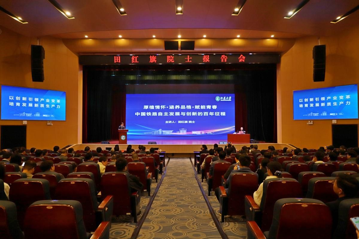 田红旗结合自身的经历和感悟,以生动的语言和丰富的案例,讲述了中国铁路建设的艰难起步、奋发图强、快速发展、高铁腾飞以及新时代中国铁路的新辉煌,让现场师生深深感受到了我国铁路人的奋斗精神和爱国情怀。