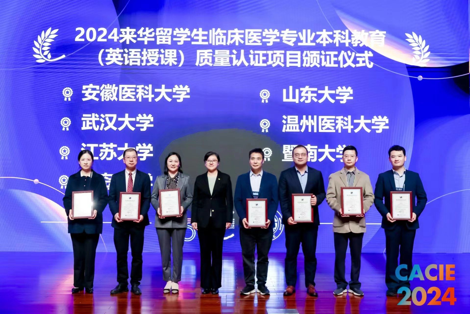 来华留学生临床医学专业本科教育(英语授课)质量认证是中国教育国际交流协会面向经教育部批准举办的来华留学生临床医学专业本科教育(英语授课)项目开展的专业认证,是交流协会来华留学生高等教育质量认证项目群的重要组成部分。该认证旨在判断项目在办学理念、办学条件、教学培养、管理和办学成效等方面是否达到质量标准,并帮助其持续改进,提升来华医学留学生培养质量。(海外教育学院 医学院)