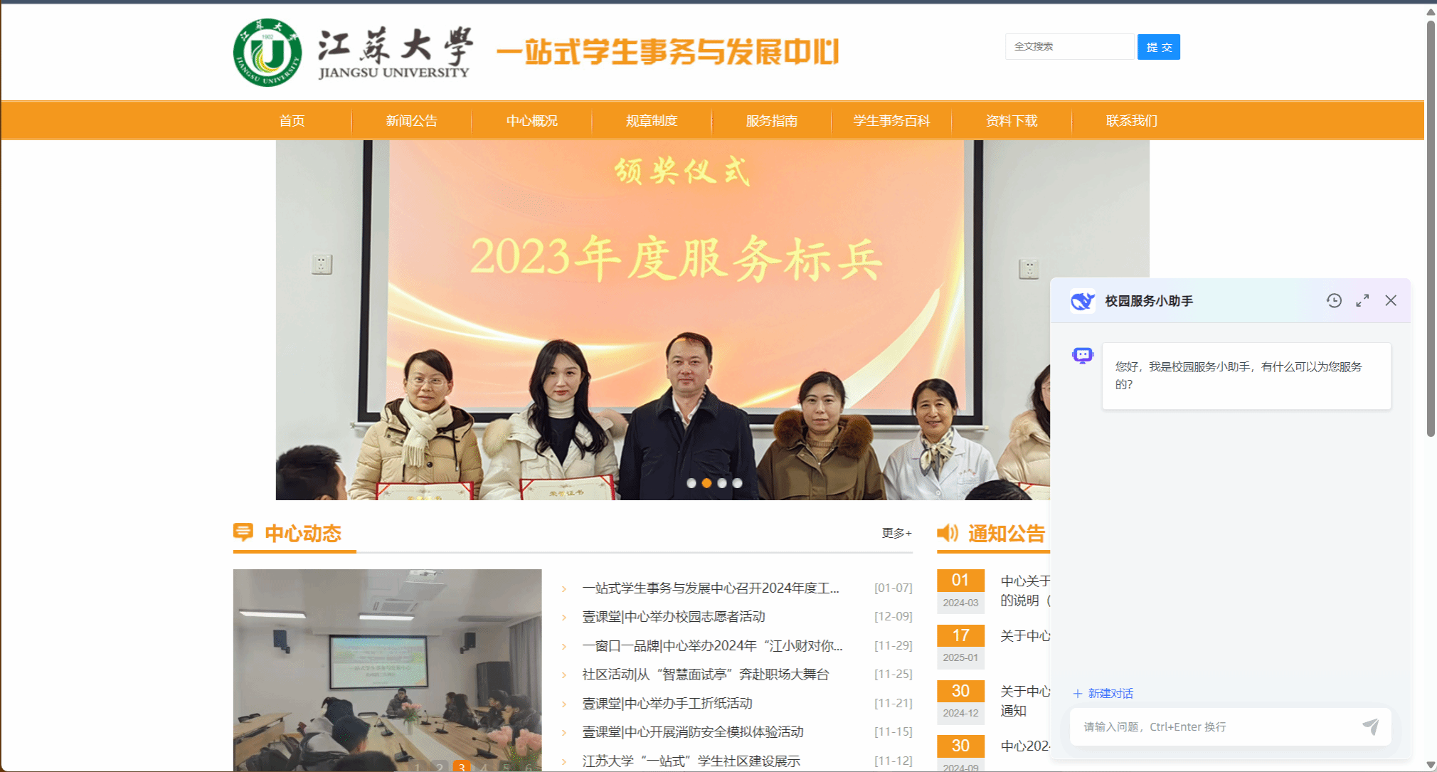 “校园服务小助手”已全面接入一站式学生事务与发展中心、数据与信息化处等部门网站,为师生提供更加便捷、智能的校园服务体验。