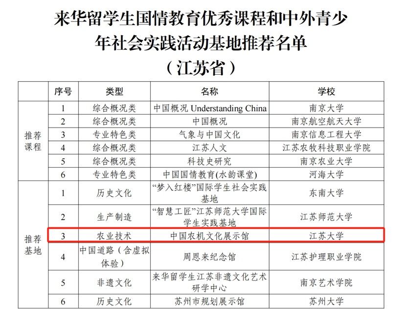 近日,教育部国际合作与交流司委托中国教育国际交流协会开展的首批“来华留学生中国国情教育优秀课程和中外青少年社会实践活动基地”评选结果揭晓,sunbet申搏中国农机文化展示馆成功入选。