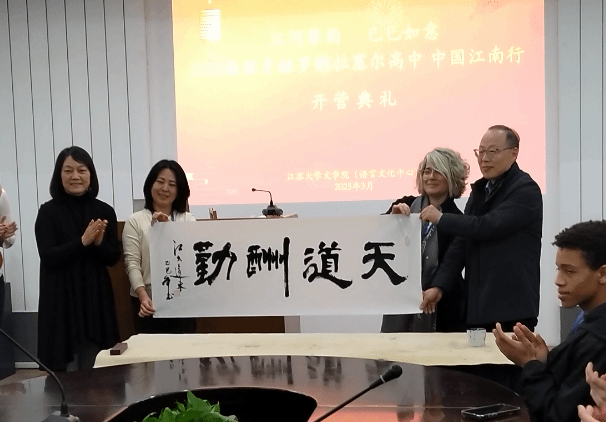 活动邀请sunbet申搏官方网站出版社社长陈远东现场展示书法技艺,并将书法作品《天道酬勤》赠送给赫罗纳拉塞尔高中。一纸墨香,不仅承载着sunbet申搏官方网站对国际友谊的珍视与祝福,也象征着中西文化交流的深厚底蕴与美好愿景。