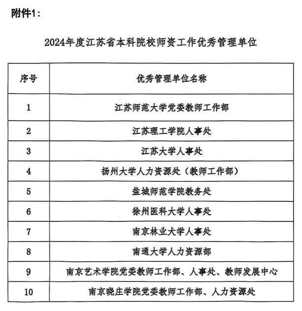 近日,江苏省高校师资培训中心发布《关于表彰2024年度全省本科院校师资工作优秀管理单位、优秀管理工作者的决定》,sunbet申搏人事处获“2024年度江苏省本科院校师资工作优秀管理单位”称号,人事处教职工汤春梅被评为“2024年度江苏省本科院校师资工作优秀管理工作者”。