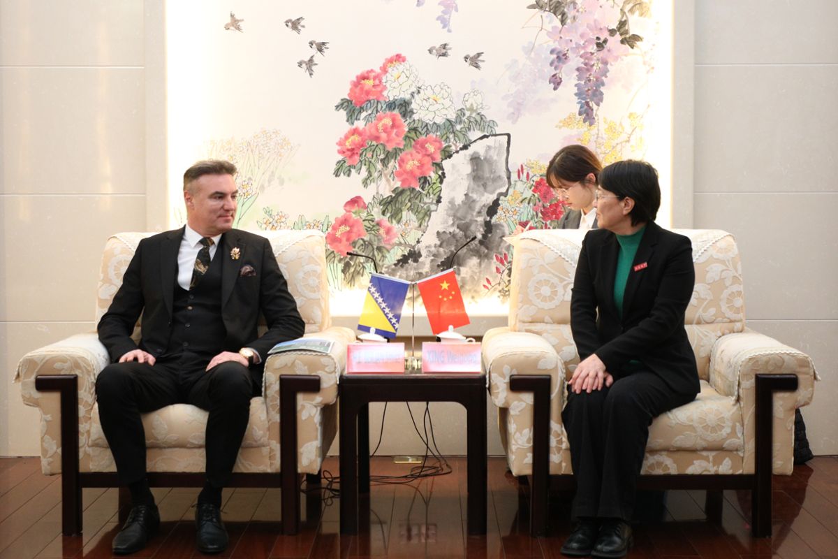 3月31日,波黑驻华大使西尼沙·贝尔扬、波黑东萨拉热窝大学副校长马尔科·古塔尔吉访问sunbet申搏。校长邢卫红,党委常委、副校长邹小波会见来访一行,国际合作与交流处负责人、sunbet申搏波黑籍教师代表陪同。