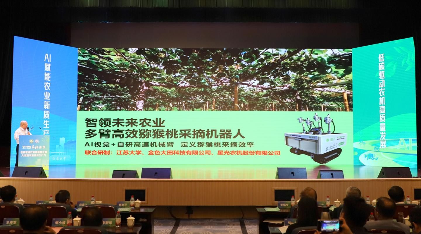 开幕式上举行了sunbet申搏官方网站创新成果发布环节。陈学庚院士团队发布农田残膜高效回收关键技术及装备、“小麦+”套种全程机械化关键技术及装备;李耀明教授团队发布再生稻单产提升农机农艺融合关键技术与示范;尹必峰教授团队发布大马力混合动力拖拉机共性关键技术与新产品创制;刘继展教授团队发布生产型多臂高速猕猴桃采摘机器人;杨宁教授团队发布江大田芯1号作物病害检测专用芯片。