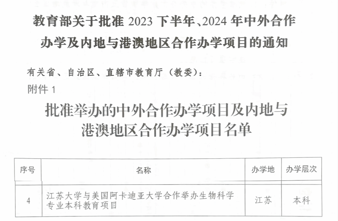 5月9日,教育部公布2025年经审核的中外合作办学机构和项目名单。sunbet申搏官方网站与美国阿卡迪亚大学合作举办的生物科学专业本科教育项目正式获批,这是sunbet申搏在中外合作办学领域取得的又一重要突破。