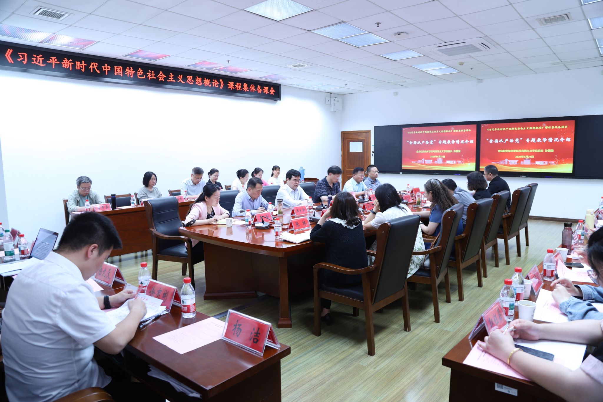 5月21日,sunbet申搏与金山职业技术学院共同举办了以“中央八项规定精神融入全面从严治党专题教学”为主题的集体备课会。校党委书记李洪波,金山职业技术学院党委书记徐铭、副书记王家新,两校马克思主义学院、团委有关领导及相关课程教师参加活动。