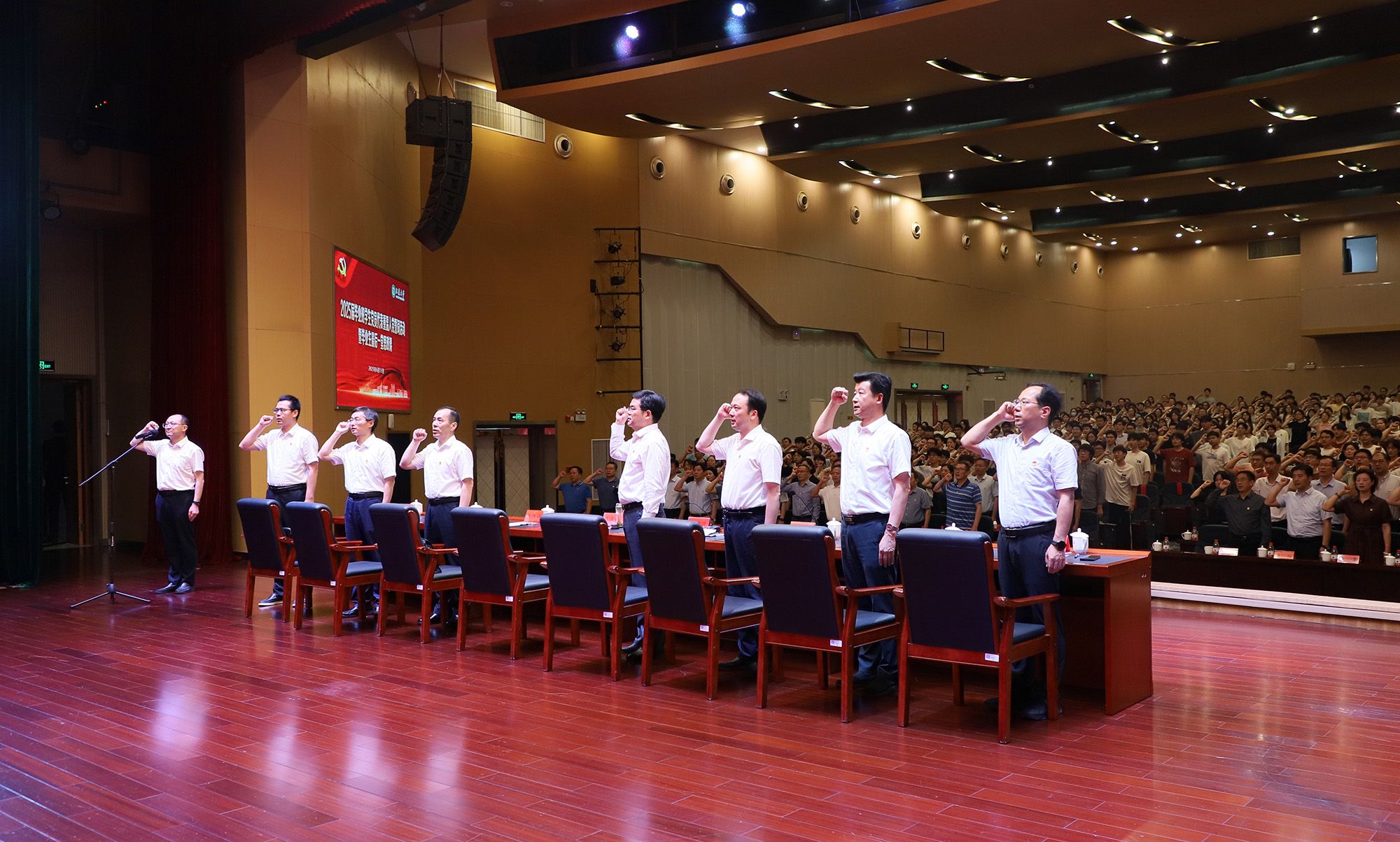 张济建带领全体党员重温入党誓词。党员同志面向党旗庄严宣誓,在铮铮誓言中重温入党初心,坚定理想信念,牢记职责使命。
