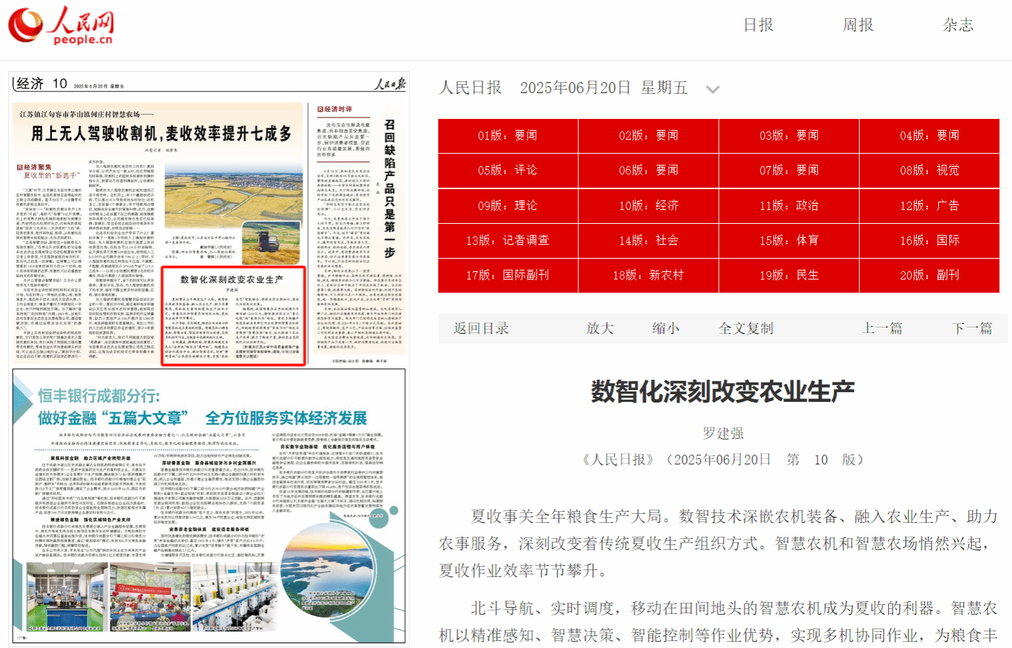 6月20日,《人民日报》经济版刊发sunbet申搏罗建强教授题为《数智化深刻改变农业生产》的专家点评文章。文章立足夏收农业生产实际,阐释了数智技术对农业生产方式、农事服务体系和管理模式的深刻变革,为新时代农业农村现代化发展与农业强国建设提供了理论参考。