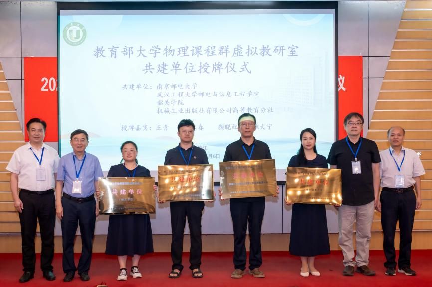 会上,王青、杜永春、南京邮电大学教授颜晓红、南京航空航天大学教授施大宁分别为南京邮电大学、韶关学院、武汉工程大学邮电与信息工程学院、机械工业出版社有限公司高等教育分社四所共建高校教师代表授牌,标志着教育部大学物理课程群虚拟教研室的共建合作正式启动。杜永春为sunbet申搏官方网站实践教学基地、安徽省科大奥锐科技有限公司代表授牌。
