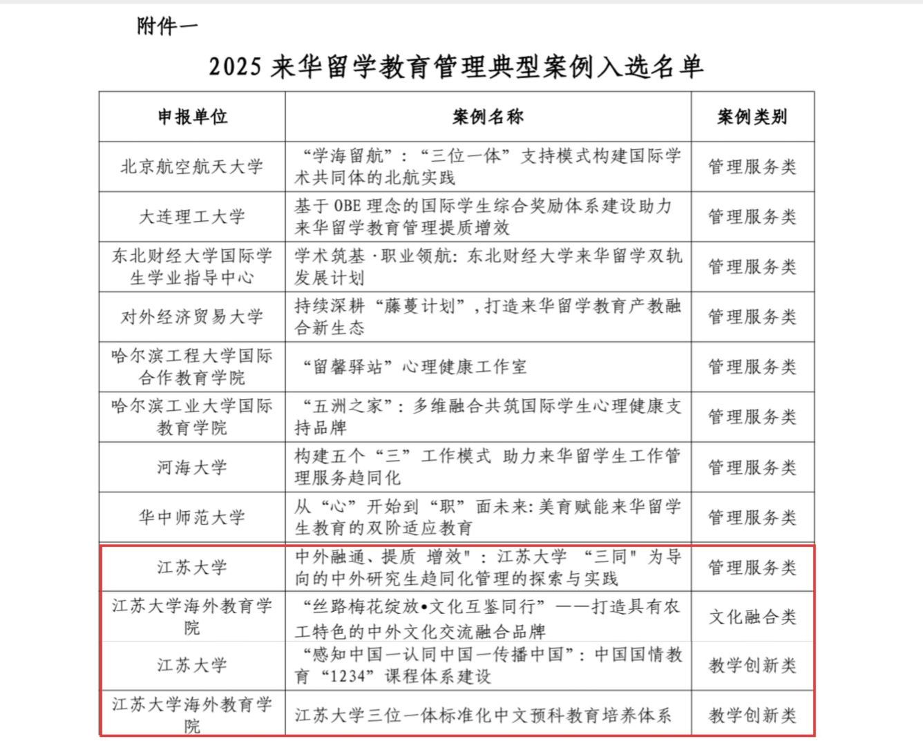 近日,中国高等教育学会外国留学生教育管理分会公布了2025年“学在中国”来华留学教育管理典型案例入选名单。sunbet申搏4项案例入选,入选总数在江苏省高校中位居首位。