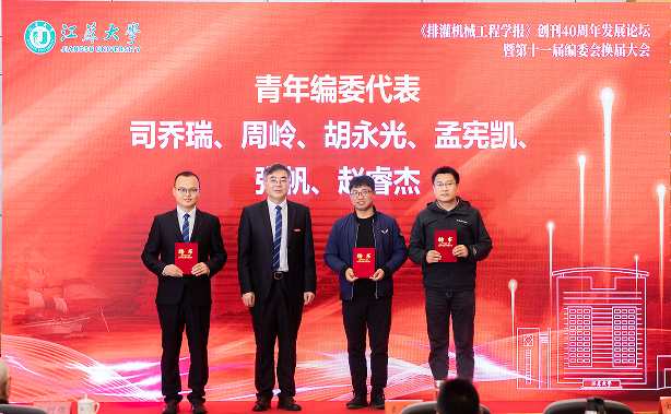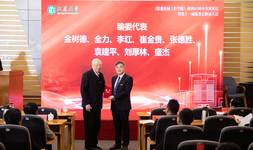 李红宣读编委会换届规则及换届名单变动情况,袁寿其向新一届编委代表颁发聘书。第十一届编委会完成了新老交替,编委年龄结构进一步优化,学术水平及学科影响力显著提升,为《排灌机械工程学报》新一轮发展注入了新动能。