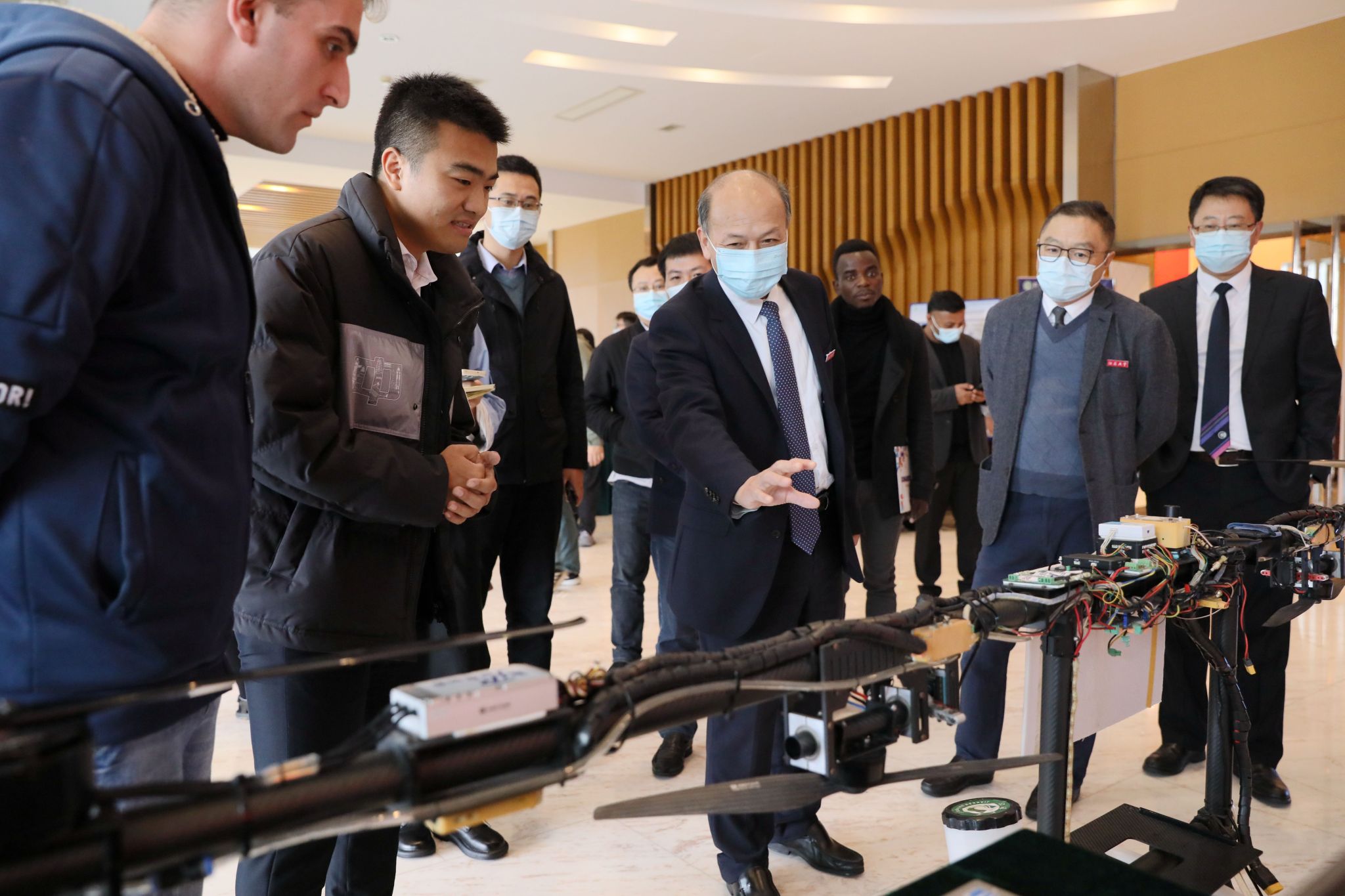 开幕式前,与会领导参观了中外研究生同室创新的最新研究成果。(研究生院)