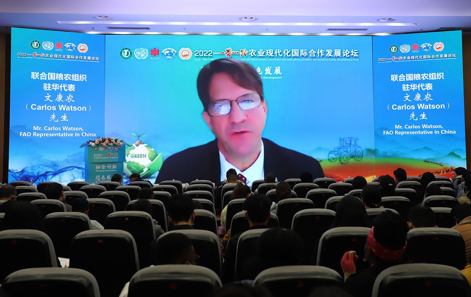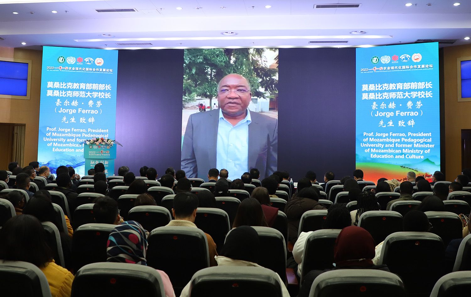 中国农业国际合作促进会会长许国成、中国农业机械工业协会执行副会长赵剡水、中国国际发展知识中心副主任蒋希蘅、中国教育国际交流协会副秘书长安延、中国农业机械化协会副秘书长夏明、中国农业科学院海外中心副主任聂凤英、农业农村部对外经济合作中心国际组织处副处长于浩淼、中国商业股份制企业经济联合会国际文化教育交流促进工作委员会主任邹海、中国国际科技促进会常务理事邢纪国;以及联合国粮农组织驻华代表文康农,联合国粮农组织植物生产与保护司司长夏敬源,联合国工业发展组织农业司司长德耶内·泰泽拉,联合国亚洲及太平洋经济社会委员会战略与项目管理司司长阿德南·阿里亚尼,联合国可持续农业机械化中心副主任安书曼,世界粮食计划署中国办公室南南合作主管贾焰,巴基斯坦国家农业研究委员会主席古兰·穆罕穆德·阿里尼,波黑塞族共和国农林水利部部长鲍里斯·帕沙里奇,莫桑比克教育部前部长、莫桑比克师范大学校长豪尔赫·费劳,尼泊尔跨喜马拉雅友好协会主席拉吉姆·库玛·贾哈,加纳苏尼亚尼能源与自然资源大学校长埃尔维斯·阿萨雷·比迪亚高,波黑塞族共和国巴尼亚卢卡大学副校长米罗斯拉夫·马利诺维奇等国内国际嘉宾线上出席论坛。