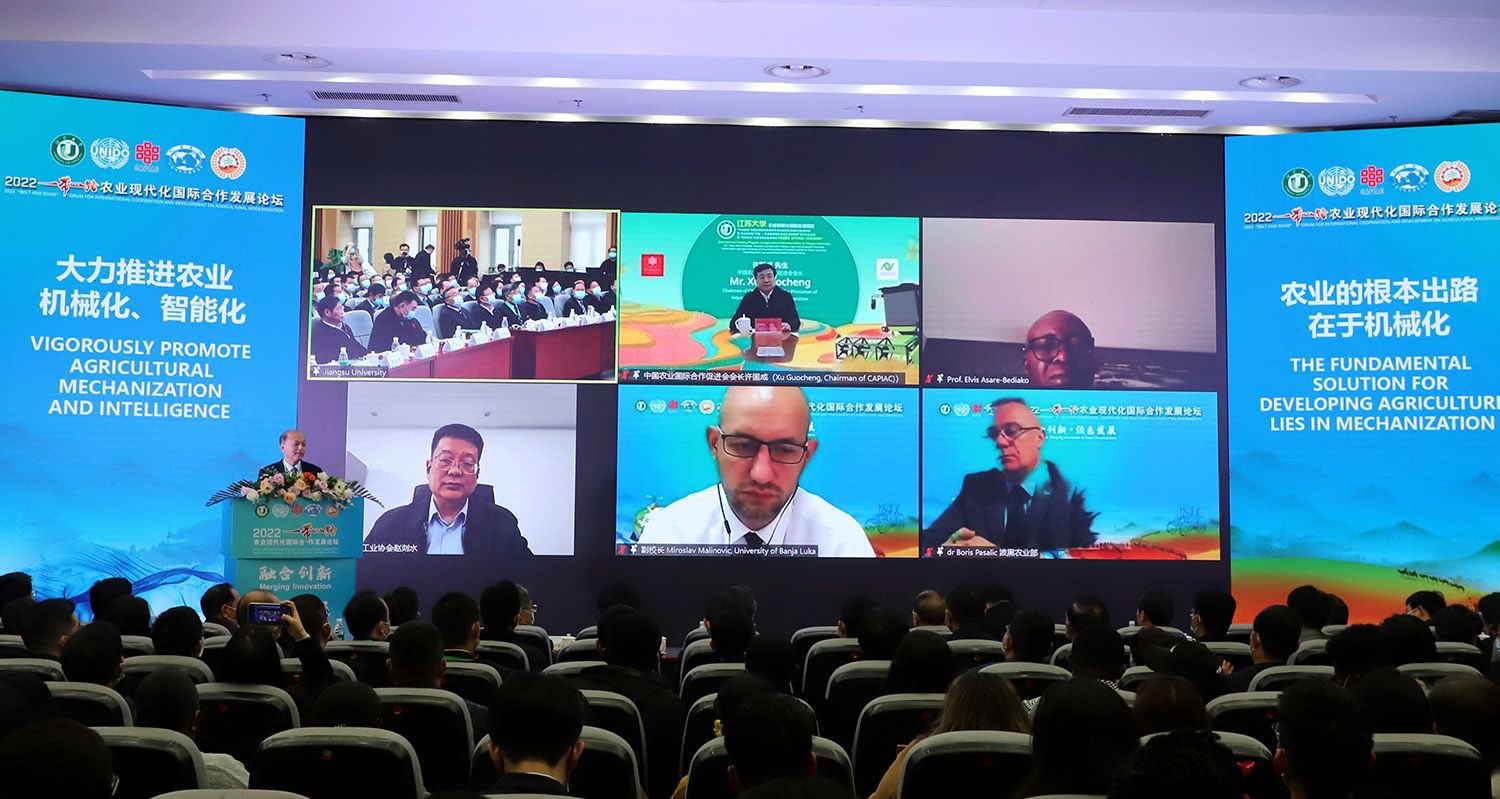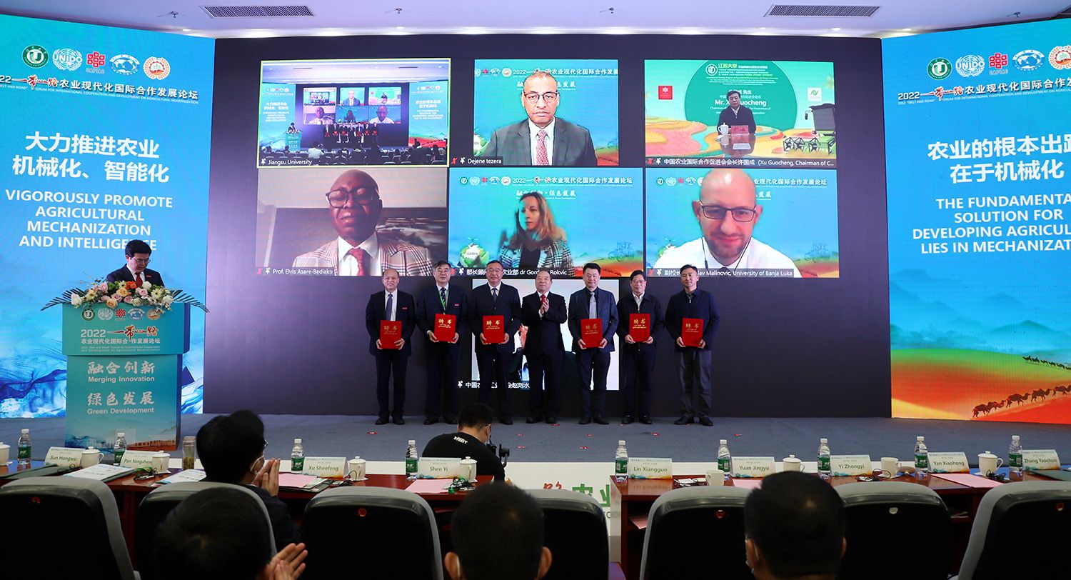 11月18日-19日,由sunbet申搏官方网站、联合国工业发展组织农业司、中国农业国际合作促进会、中国国际问题研究院、联合国可持续农业机械化中心主办的“融合创新•绿色发展”2022“一带一路”农业现代化国际合作发展论坛在镇江举行。