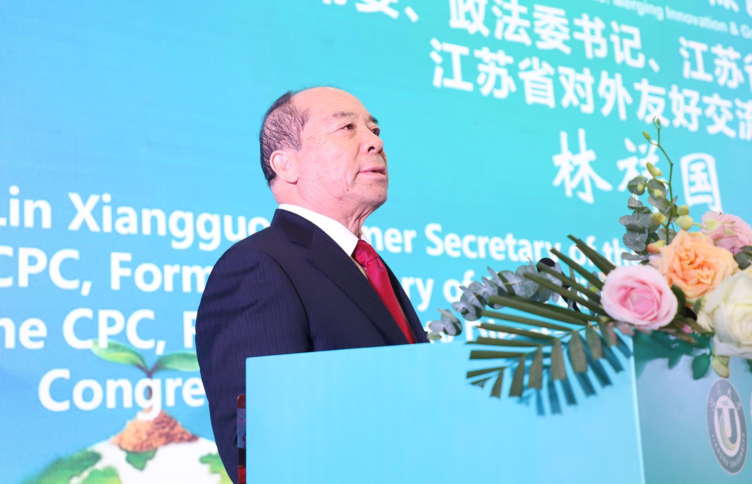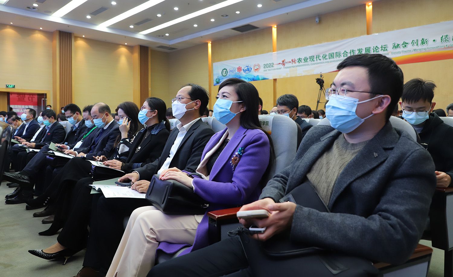 江苏省委原常委、政法委书记、江苏省人大常委会原常务副主任、江苏省对外友好交流促进会会长林祥国,江苏省农业农村厅一级巡视员沈毅,江苏省教育厅副厅长袁靖宇,镇江市人民政府副市长徐申锋,江苏省农业科学院院长易中懿、副院长孙洪武,江苏农林职业技术学院院长潘永圣,科技部中国-中东欧国家技术转移中心执行主任高凯,东华汽车实业有限公司总经理杨怀景,校党委书记、中国农业机械学会副理事长袁寿其等线下出席论坛开幕式。