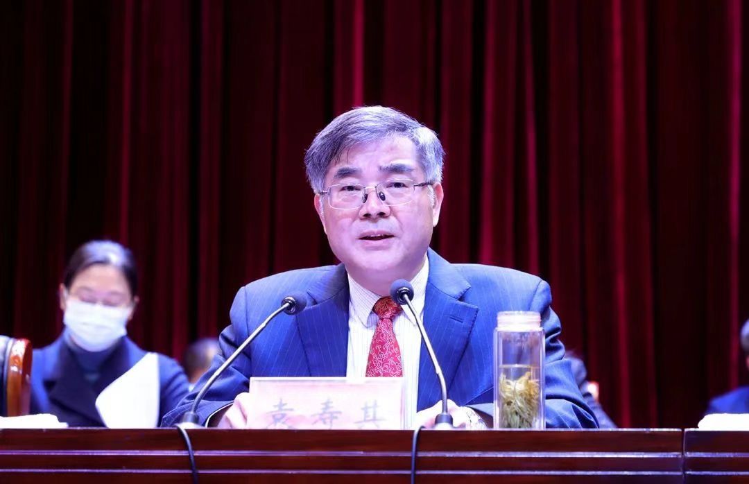 校党委书记袁寿其发表讲话。他表示,2022年,校党委认真履行管党治党、办学治校主体责任,党的领导更加坚强有力、党建引领保障效能显著、全面从严治党向纵深发展,学校党建和事业发展取得了系列新突破新成就。