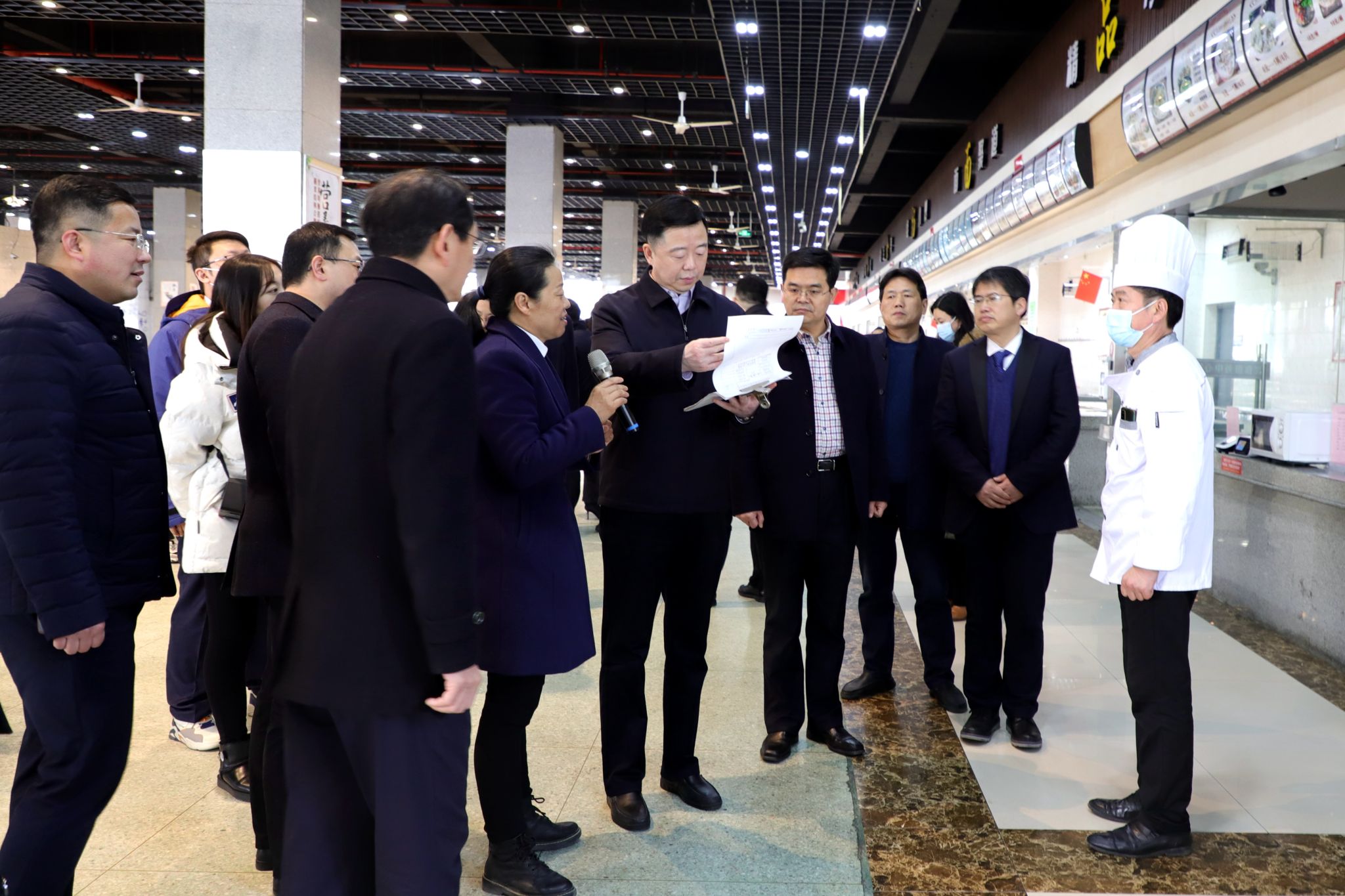 2月14日,镇江市委常委、常务副市长秦海涛率队来校就食品安全“两个责任”落实工作进行现场督导。校长颜晓红、党委副书记李洪波、副校长邹小波接待了来访一行。