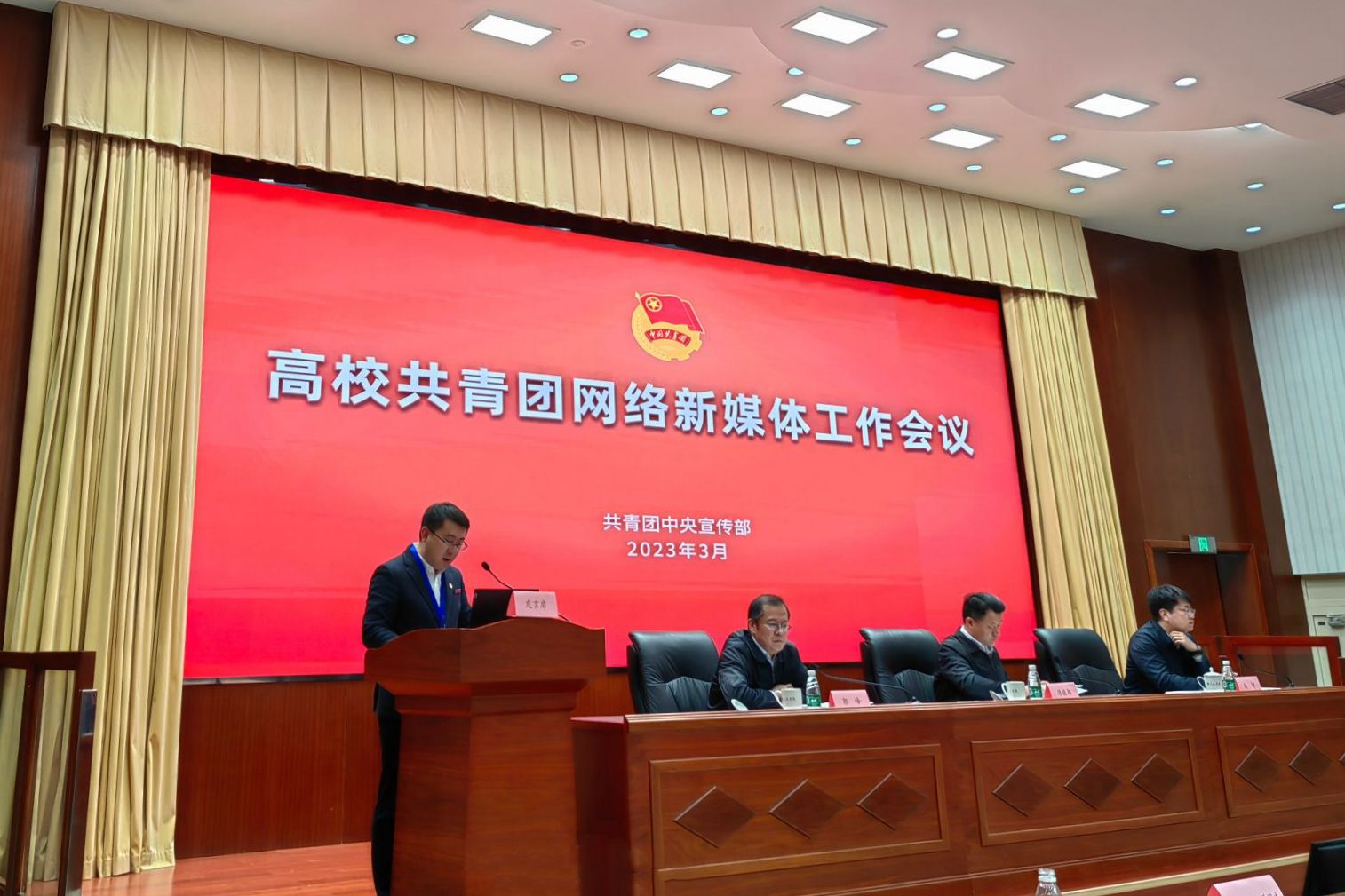 3月22日,2023高校共青团网络新媒体工作交流活动在中国青年政治学院(中央团校)举行,团中央书记处书记傅振邦、团中央宣传部部长郭峰、团中央基层建设部副部长赵博出席会议。sunbet申搏团委作为全国高校共青团新媒体重点工作室参加交流会。