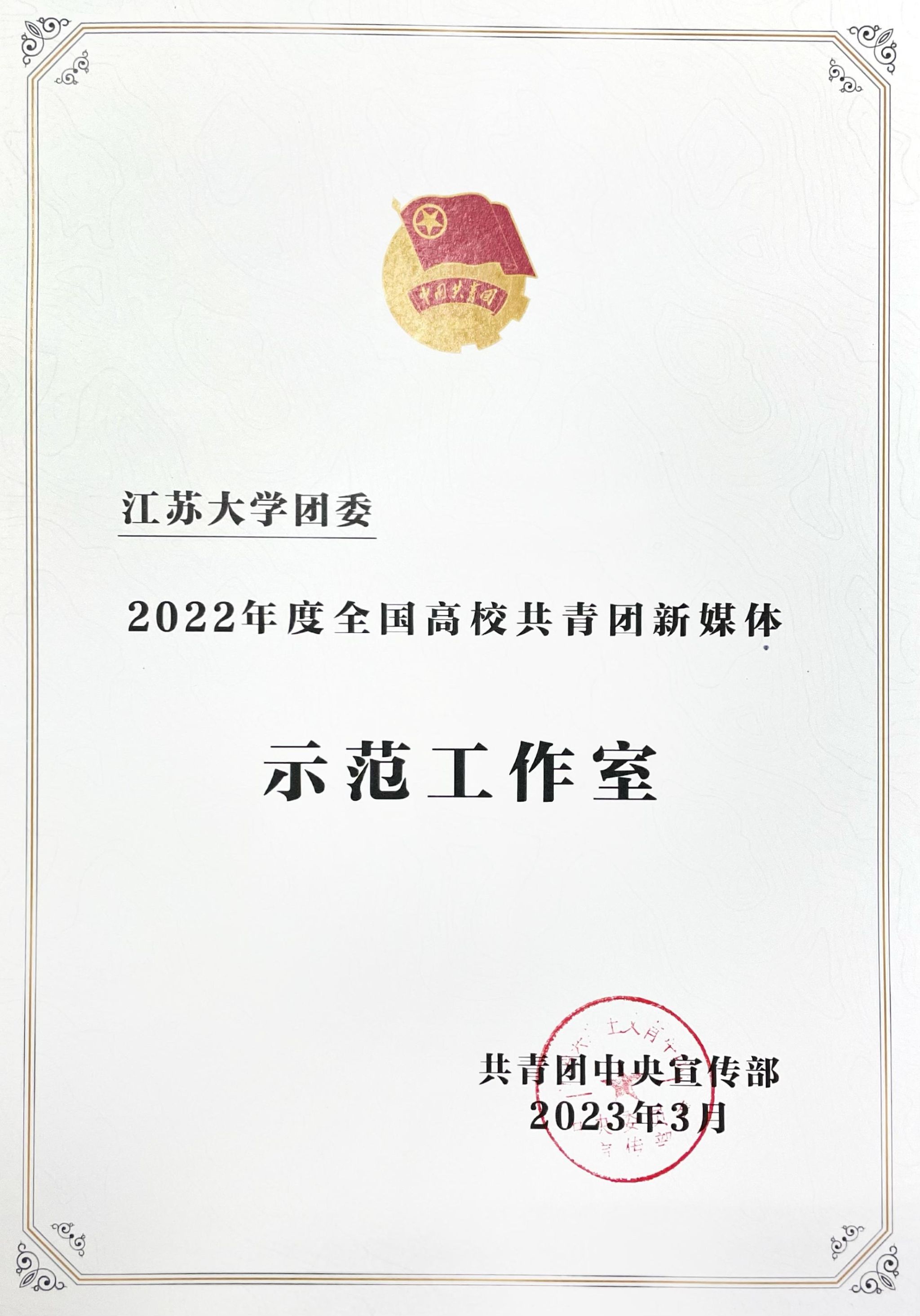 活动现场还公布了35家“2022年度全国高校共青团新媒体示范工作室”名单并颁发证书,sunbet申搏官方网站团委作为江苏省唯一高校团委获评。