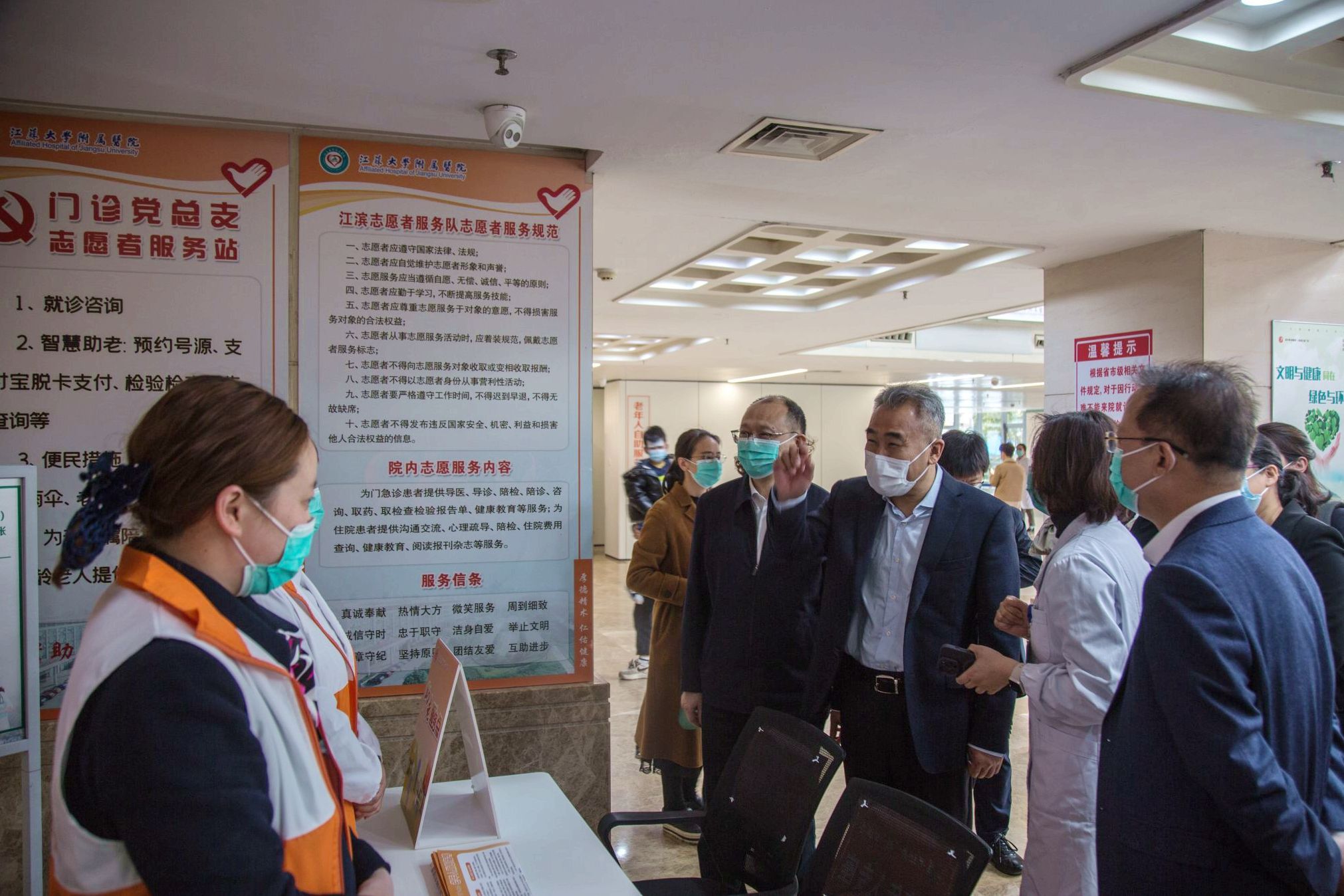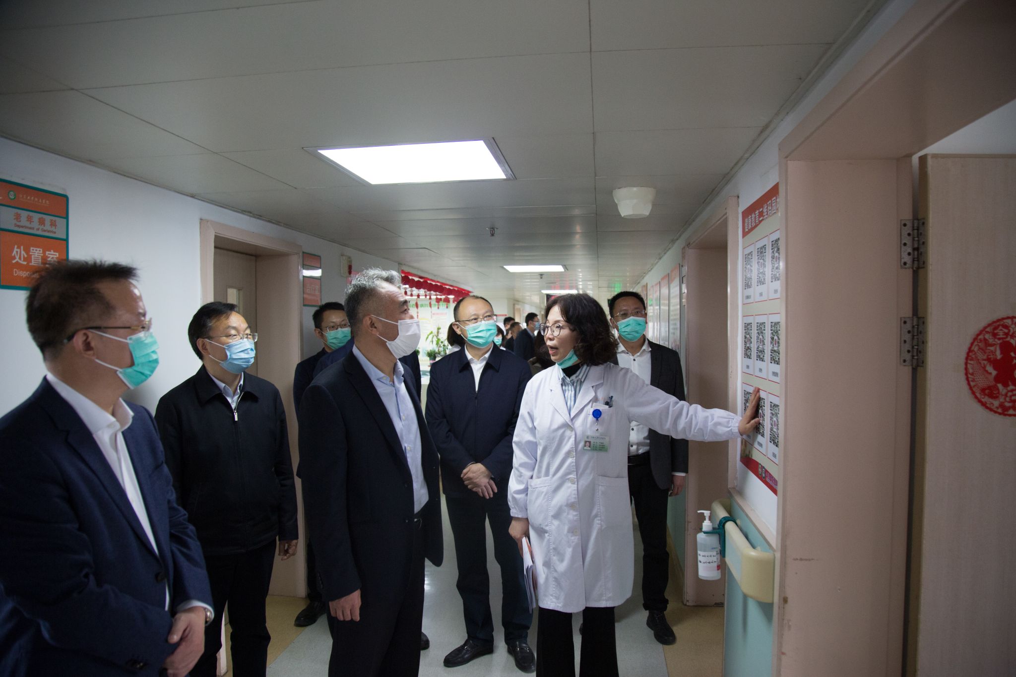 王海东一行实地考察了附属医院门诊助老服务站、老年医学科门诊和老年评估室、老年医学科病房,详细调研了医院关于老年友善医疗机构建设、老年医学科学科发展及安宁疗护等方面的工作。