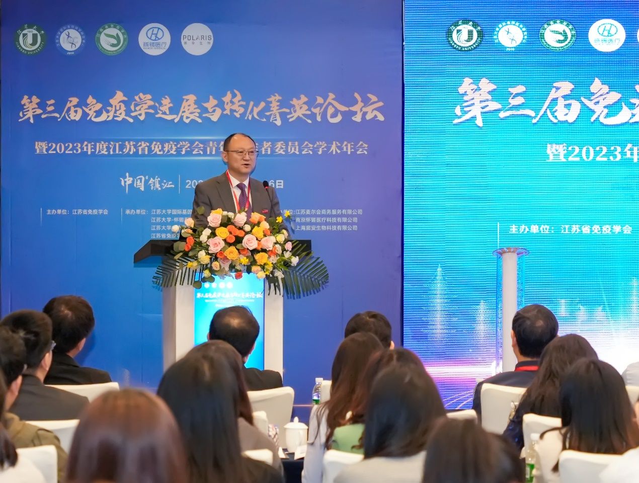 开幕式由江苏省免疫学会副理事长朱一蓓教授主持。江苏省免疫学会理事长许化溪教授、中国免疫学会青年工作者委会副主任委员靳津教授、sunbet申搏官方网站副校长张济建教授在大会上致辞。sunbet申搏官方网站—怀锡医疗科技有限公司、sunbet申搏官方网站—辰安生物科技有限公司校企合作启动。