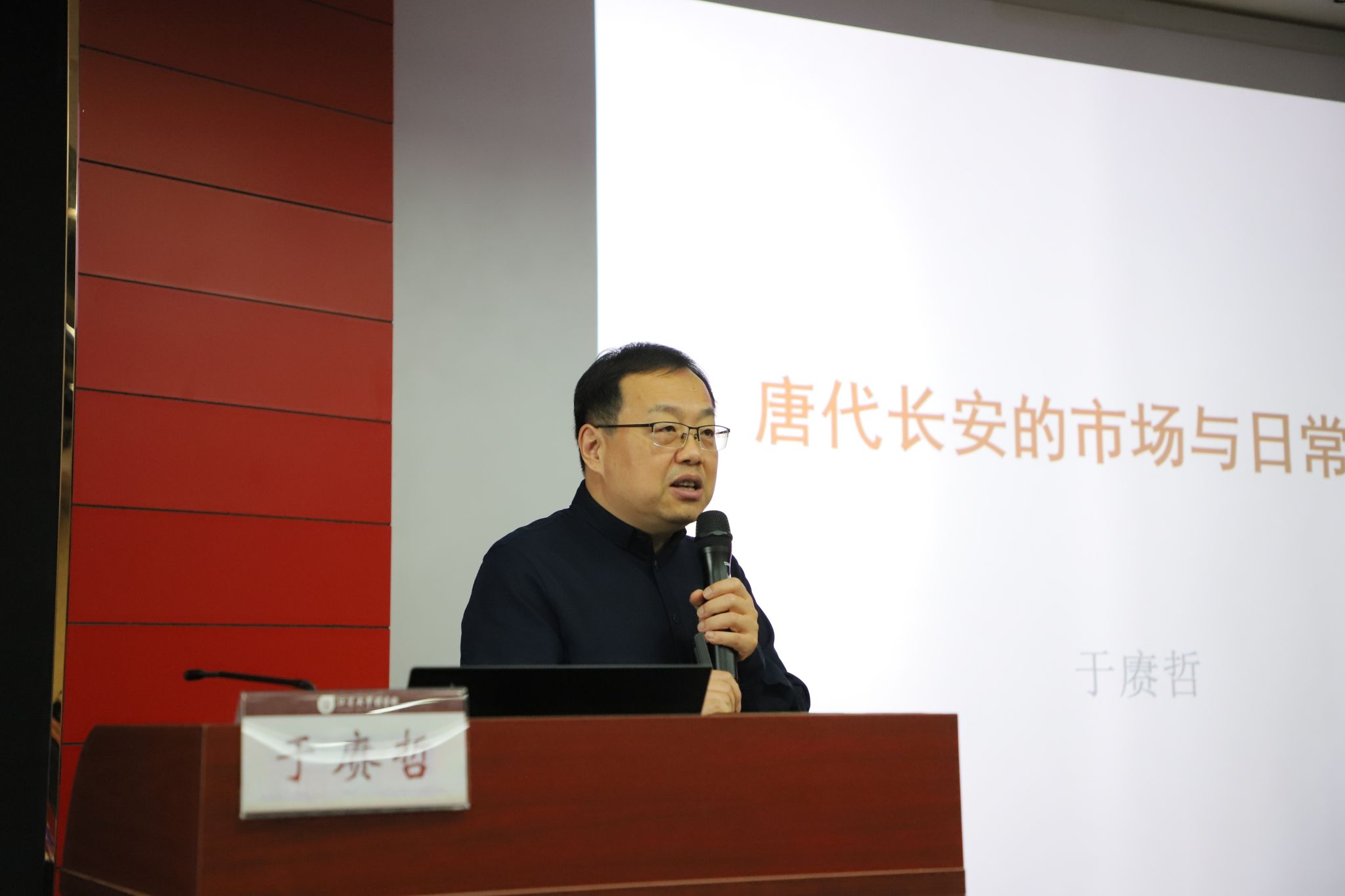 开幕式后,于赓哲作题为“唐代长安的市场与日常生活”的讲座,带领大家梦回唐朝,体验长安城内普通人的日常生活。